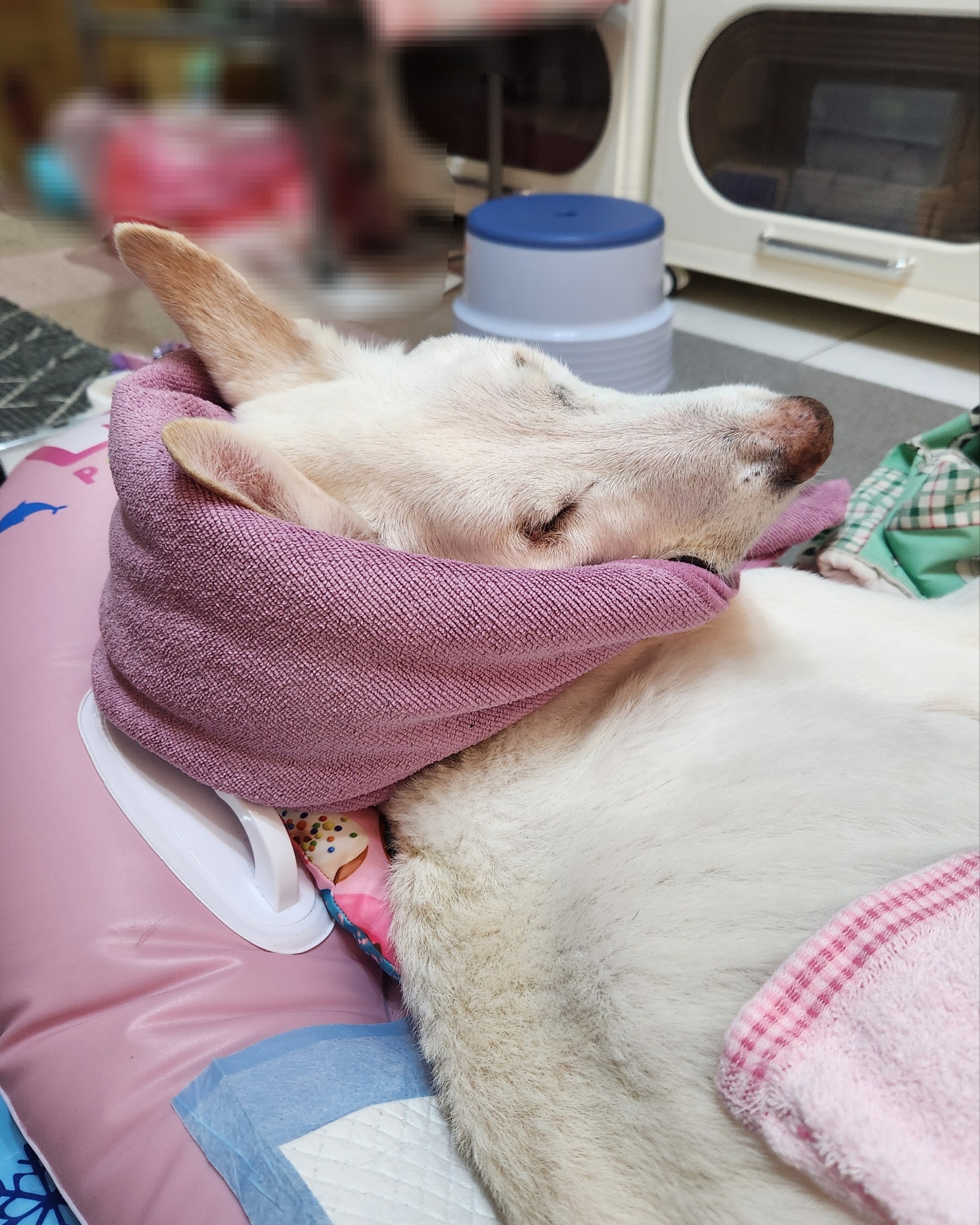 昏倒奶奶狗,居然抬頭睡著