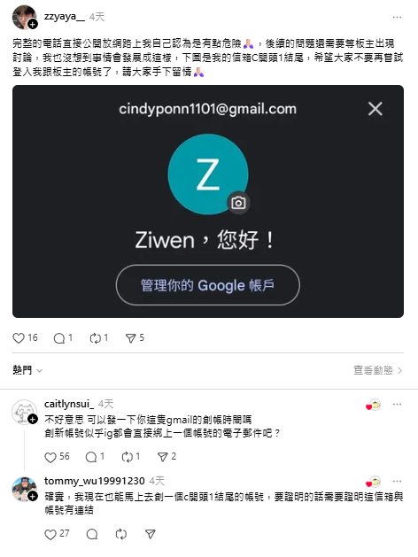 連結的原PO看起來是用帳號名按忘記密碼之類的去看信箱跟手機,也是蠻厲害(可怕)的……