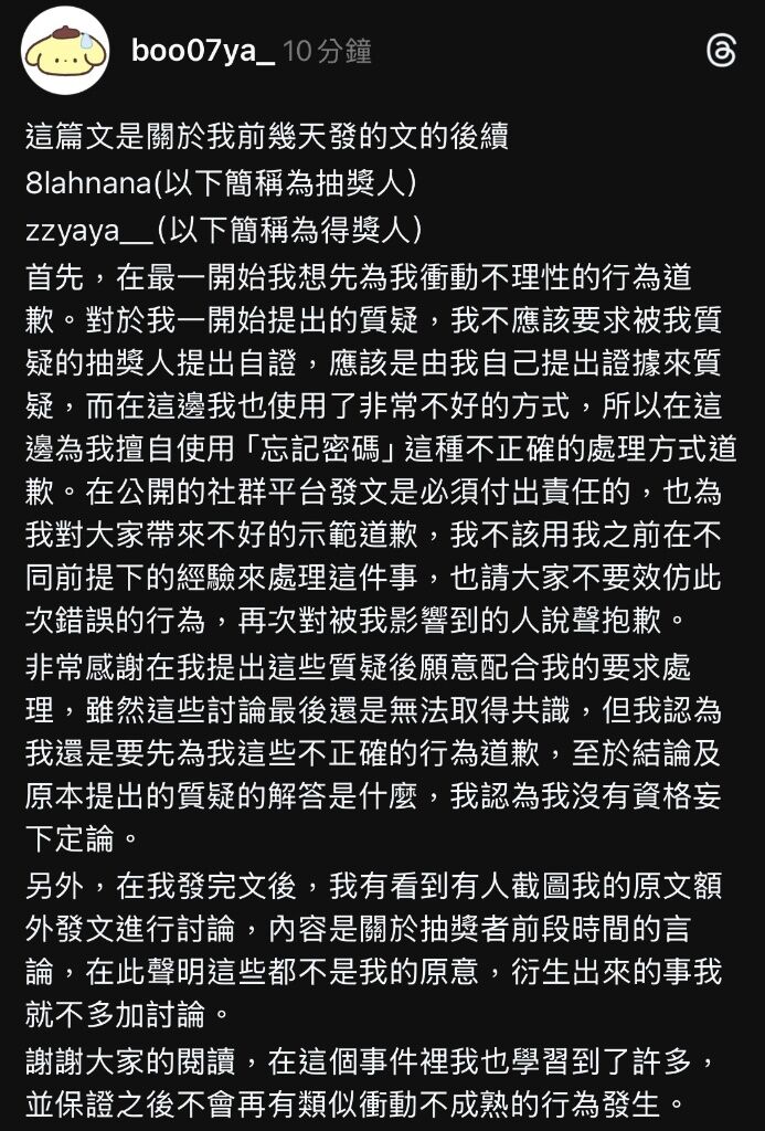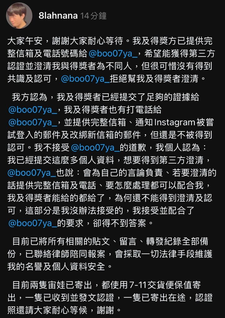 現在還是有人在抽獎人的文底下繼續質疑,不過不把兩隻門號曬出來永遠解釋不完?