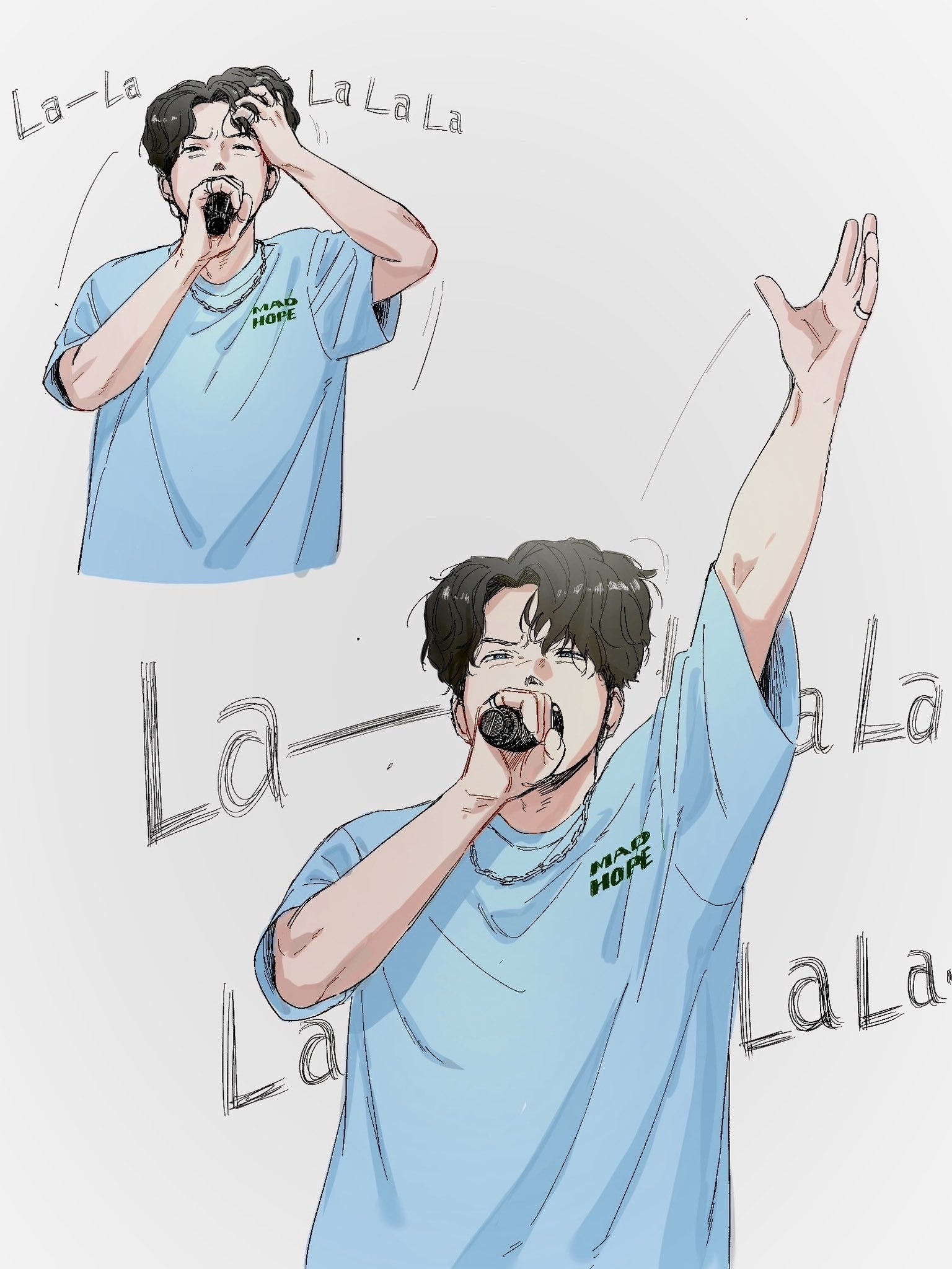 剛剛看到一篇誇他身體很好的文。邊跑邊唱滿身大汗還不會喘。