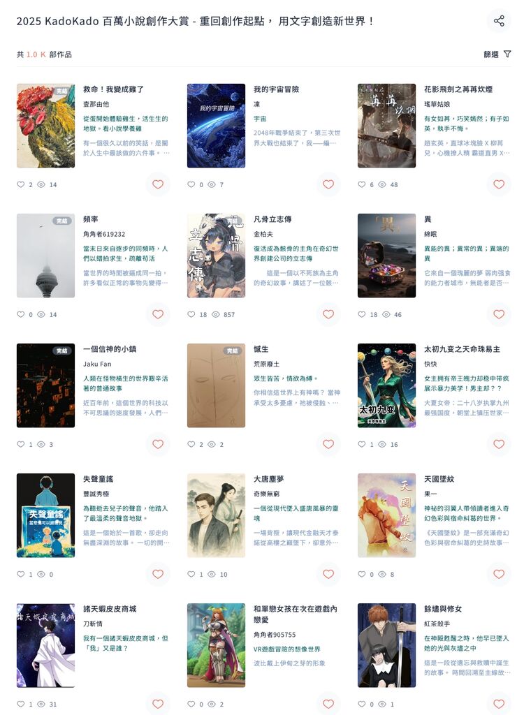 如果以一個想透過比賽找自己感興趣作品的讀者來說其實有點辛苦,原因是數量太多+有些作品真的很難透過比賽頁面的少少資訊看出來是什麼。