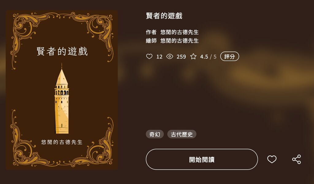 心得:篇幅不短約25萬字,仔細的讀了楔子,然後快速掃過後面三章,確定是我會感興趣的作品所以決定先存起來之後再找時間好好讀~