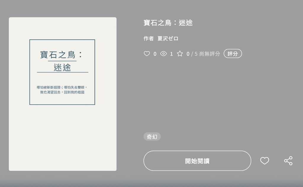 不知道作者是不是被斷網了總之只有外殼沒有內容,希望他之後考慮參加新的奇幻大賞,寶石之鳥的設定感覺讚讚的。