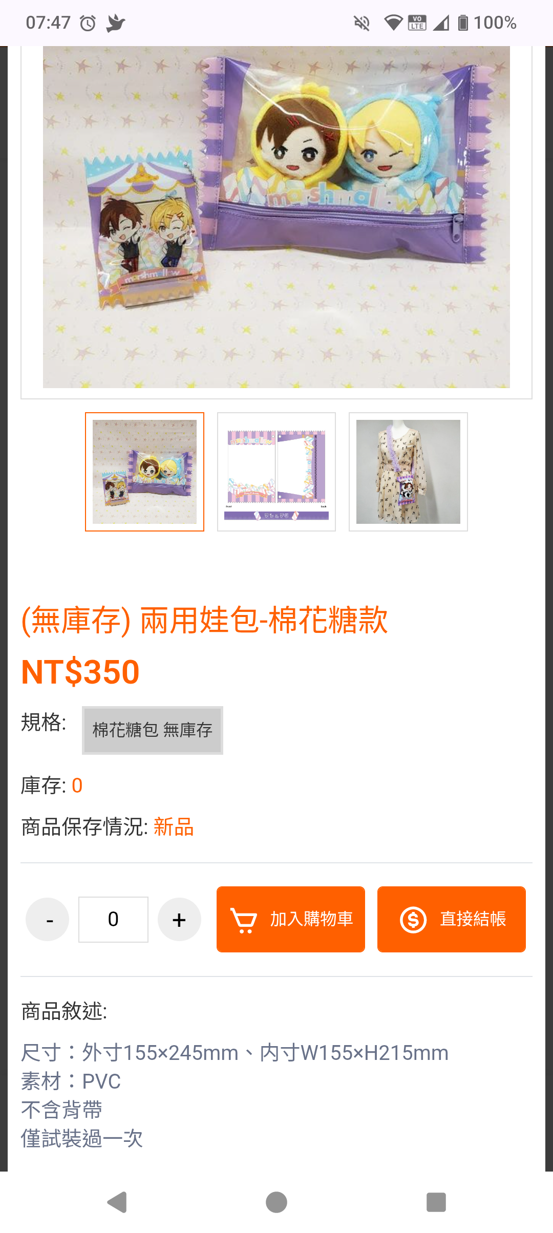 : 您好、那個小袋跟娃娃等其他東西是官方的展示用擺設,販售的品項如標題就是兩用娃包本體