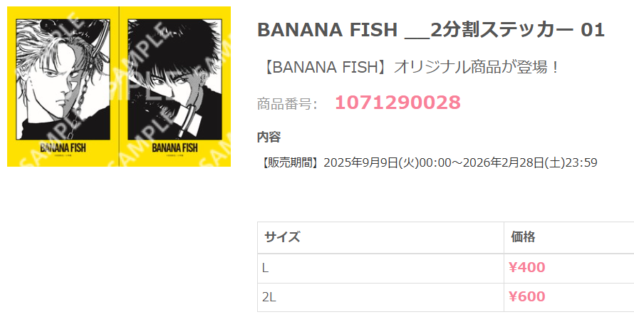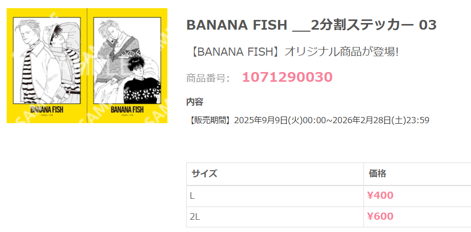 BANANA FISH __2分割ステッカー 01/L判貼紙/1071290028/+1