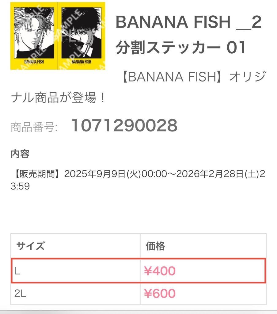 BANANA FISH __2分割ステッカー 01/L判貼紙/1071290028 +1