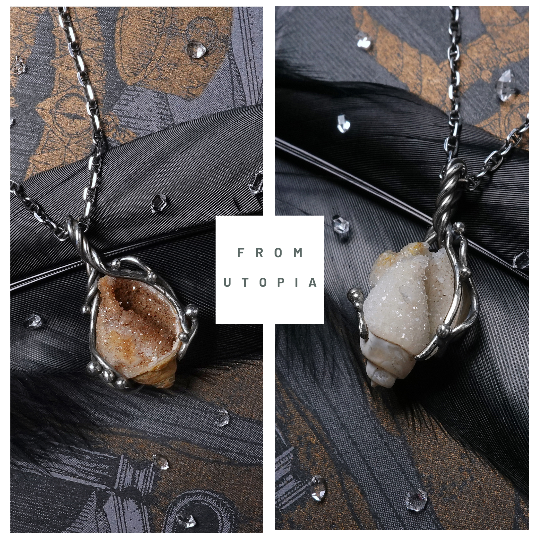 潮汐鎖語。白晝。晶簇貝殼純銀墜