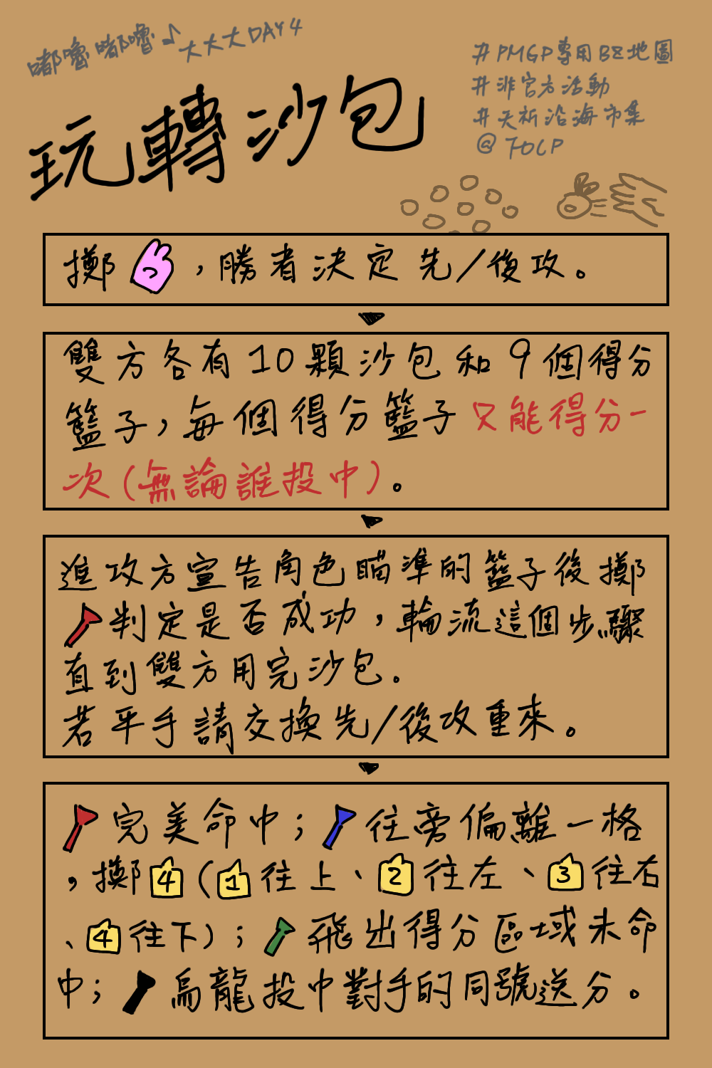 「太多也不行嗎?那我也比個讚!」高舉手中的沙包,然後對它比了一個讚才丟出去。