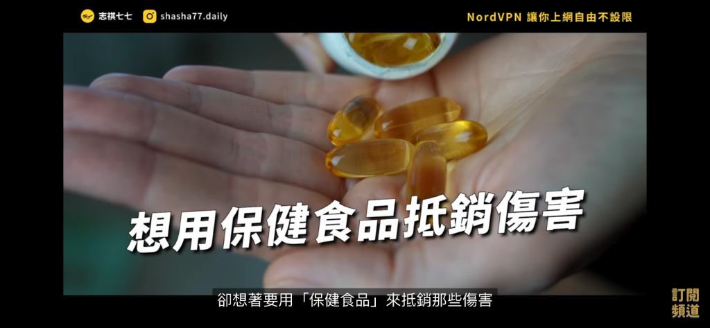 影片標題為「一半以上台灣人都在吃!保健食品真的有用嗎?廣告話術騙多大?小心吃錯反而傷身!」,由志祺七七頻道製作,內容主要探討台灣保健食品市場的現況、保健食品的法律定位、功效真相、廣告亂象以及消費者應該如何正確選擇與使用保健食品。