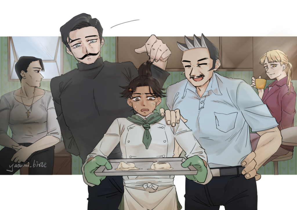 先拿這次受邀畫的第三章烤東西圖鎮樓,非常感謝襪大人我真的好榮幸