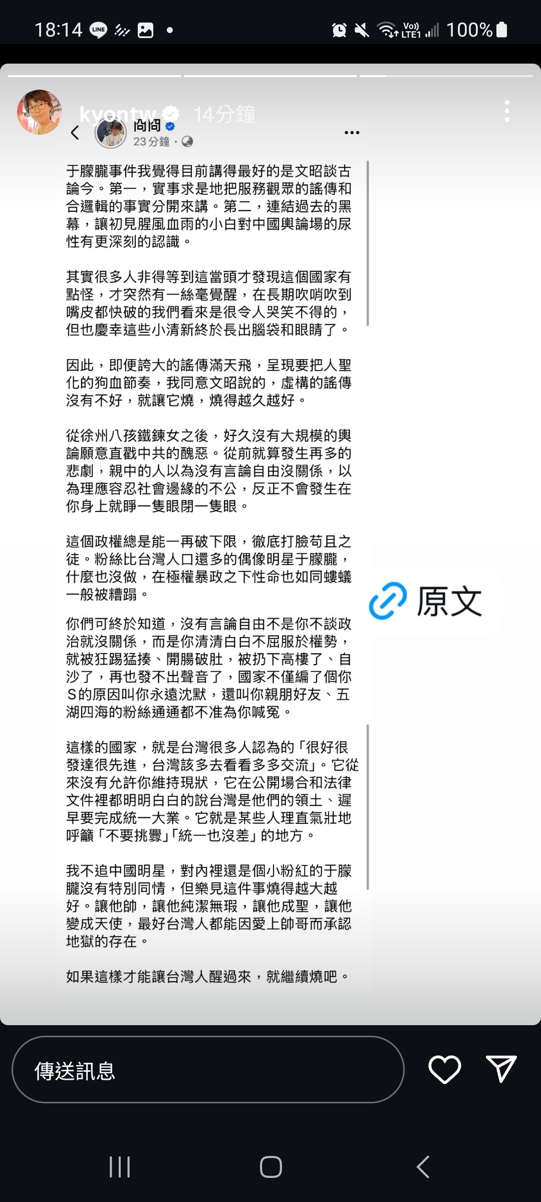 蹭于朦朧蹭出優越感來了,順便再踩一把台灣人,冏星人日常操作。