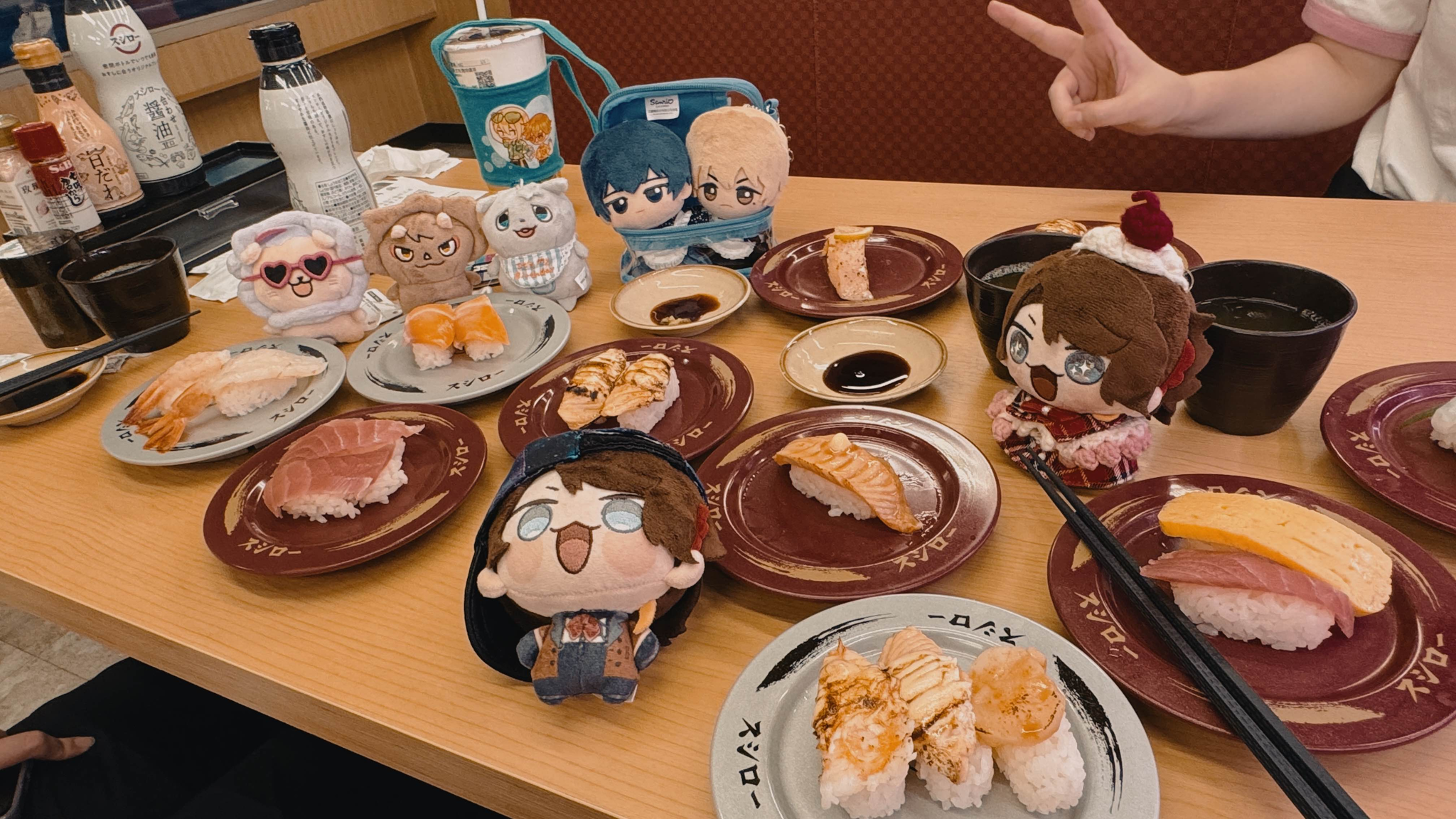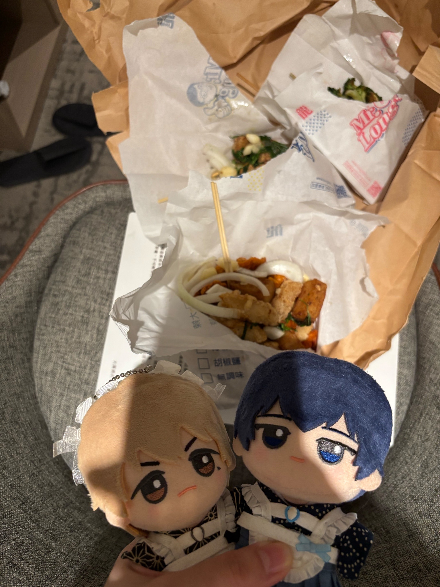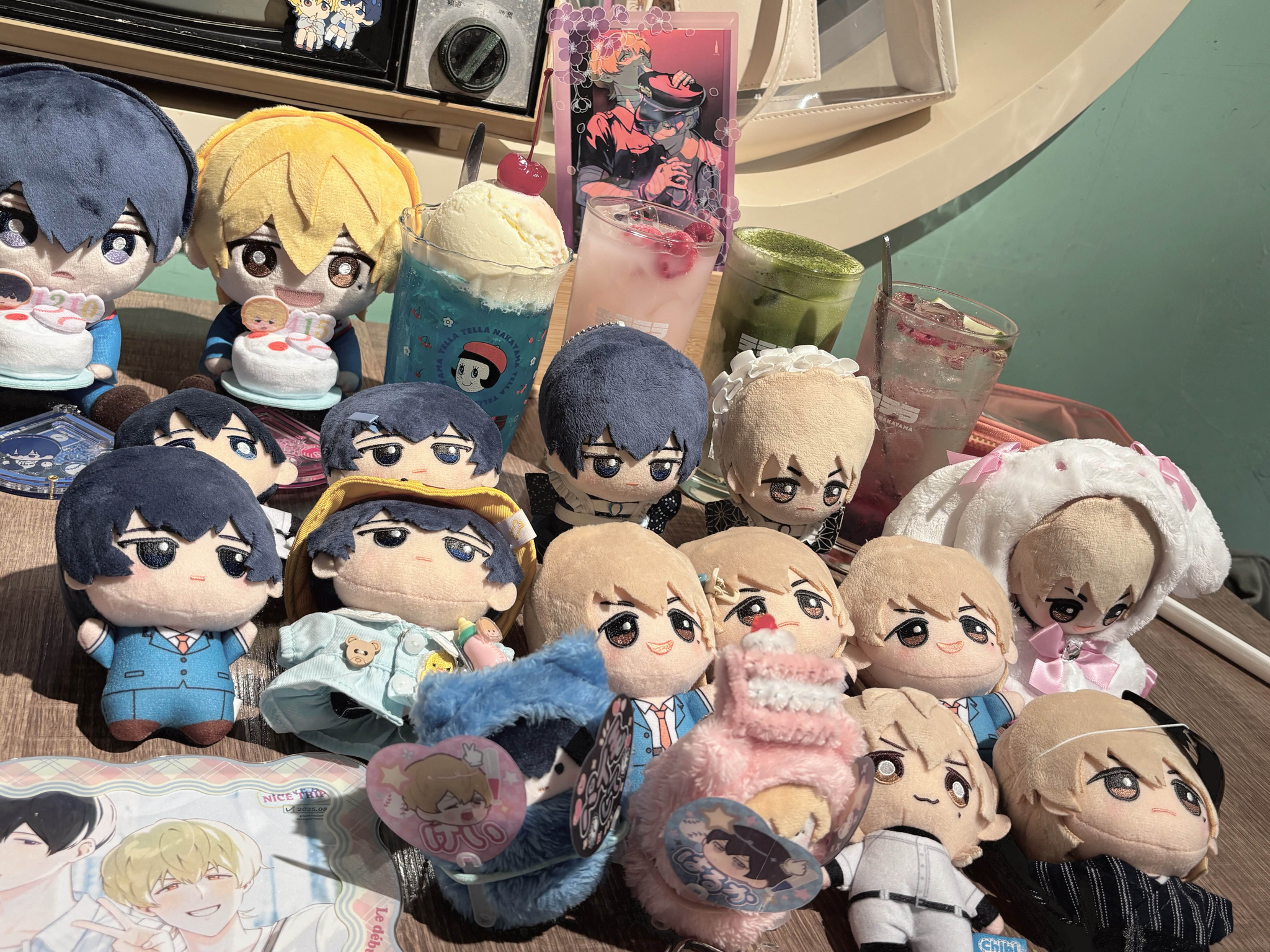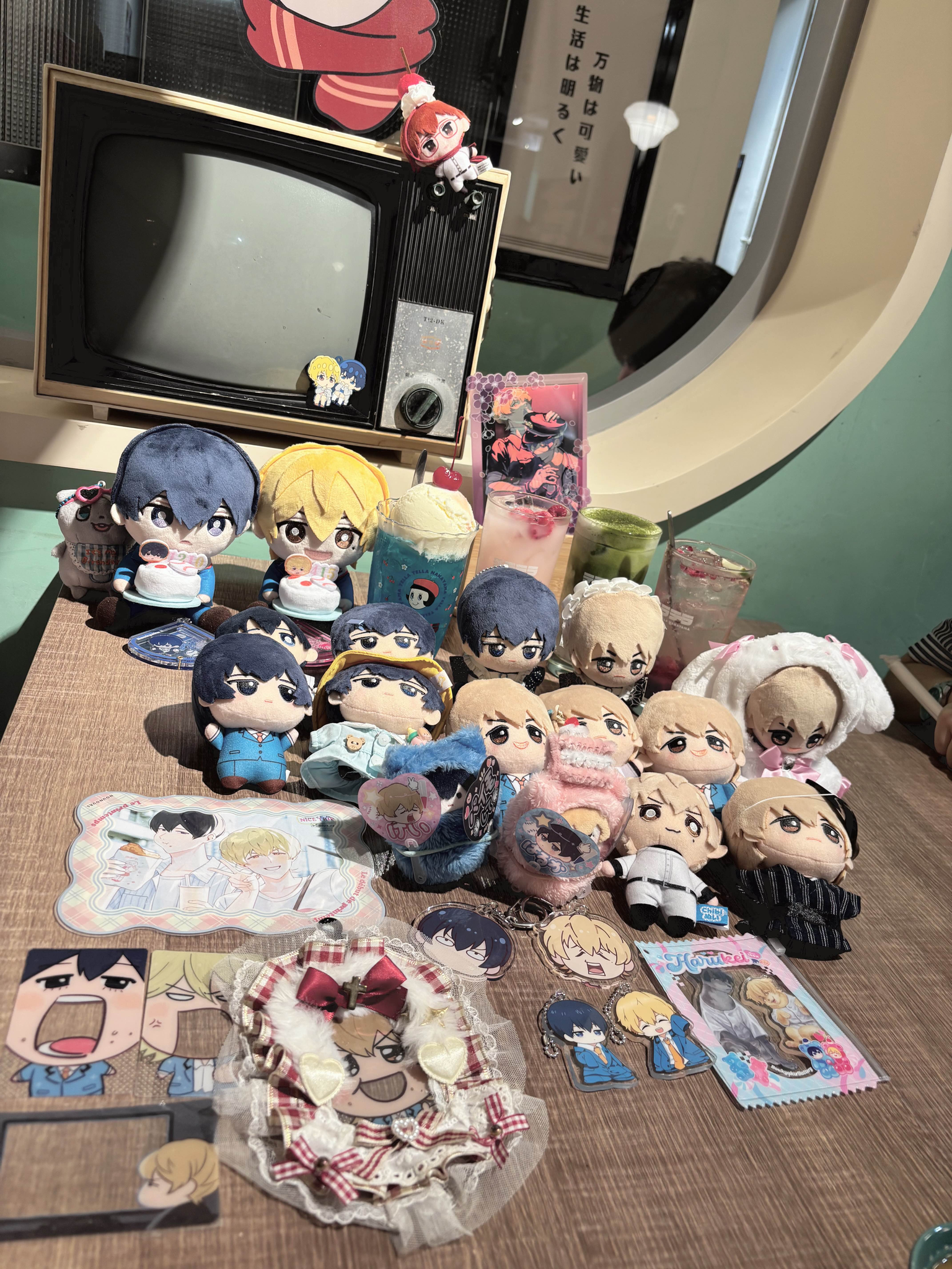 看著H桑從一個旅行袋裡面拿出海量的立牌徽章娃娃拍立得莫名有趣&也被燒到用分格旅行袋裝出門拍照用週邊,真的很能裝
