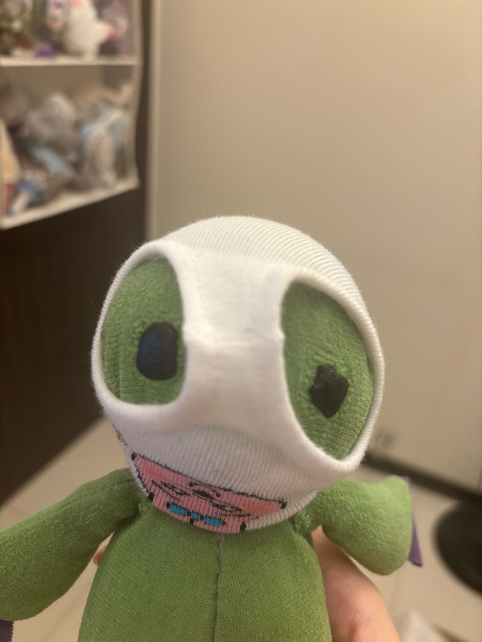 我:就是一塊布然後眼睛跟嘴巴戳洞再貼一點裝飾,想像起來應該辦得到吧.......嗎.........
