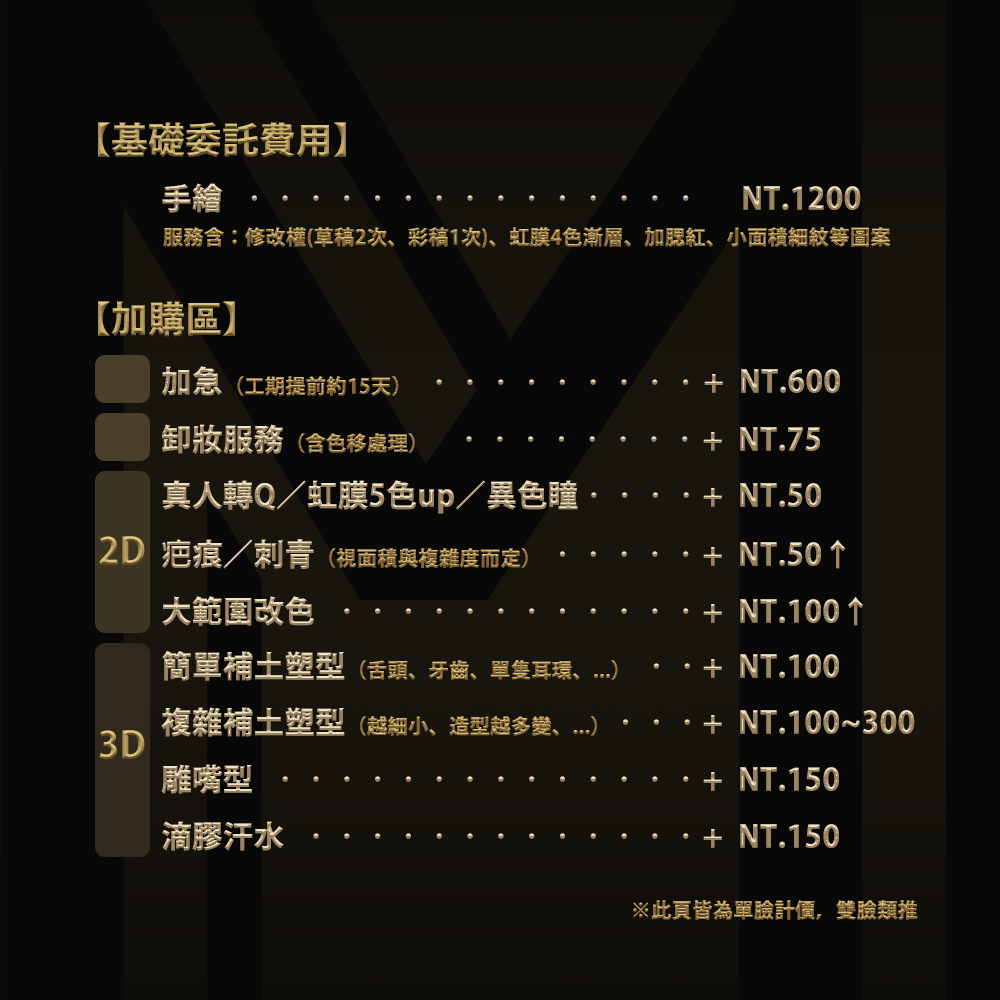 (2臉同角色95折、閉單眼9折、閉雙眼與開眼臉8折)