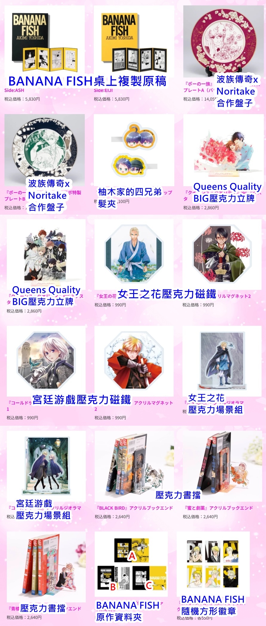 BASARA婆娑羅 BANANA FISH 砂時計 YASHA-夜叉- BLACK BIRD 黑鳥戀人 桜小路鹿乃子 和泉兼好 女王之花 光之風 渡邊多惠子