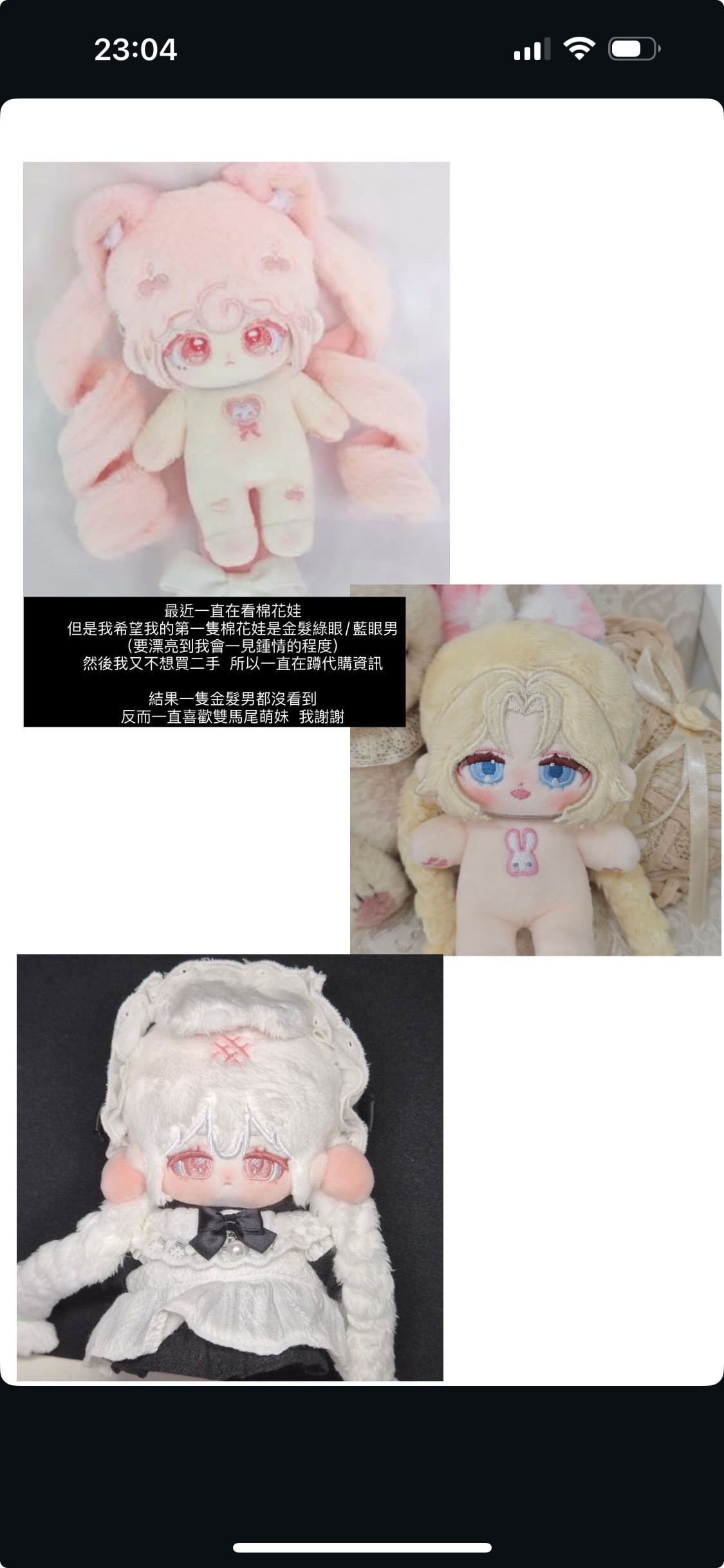 但我不想買二手所以我還在蹲一隻有緣金髮男我當初剛入坑也是跟自己說女娃兩隻男娃一隻就夠了,結果現在娃的數量大概是3的10倍吧