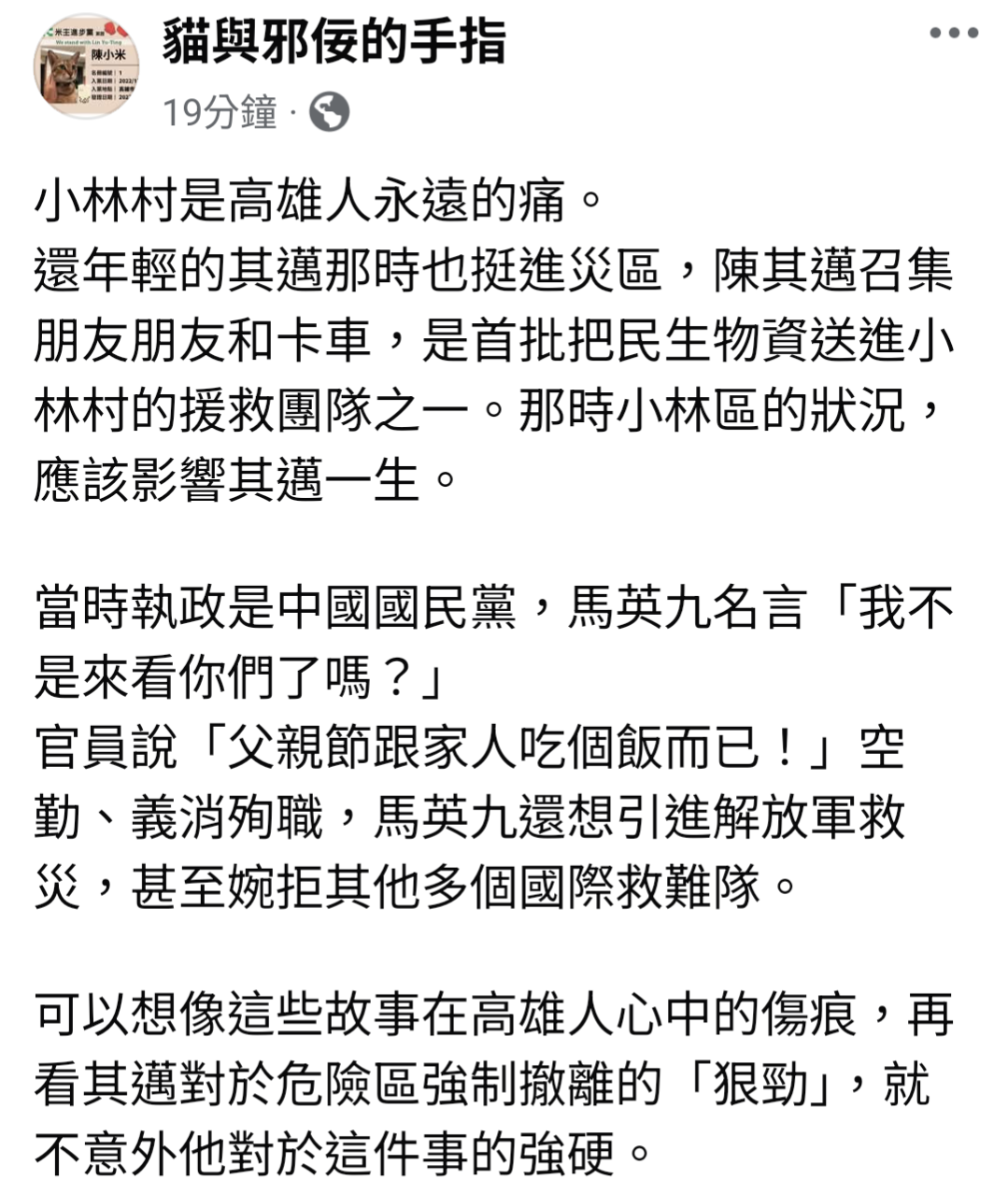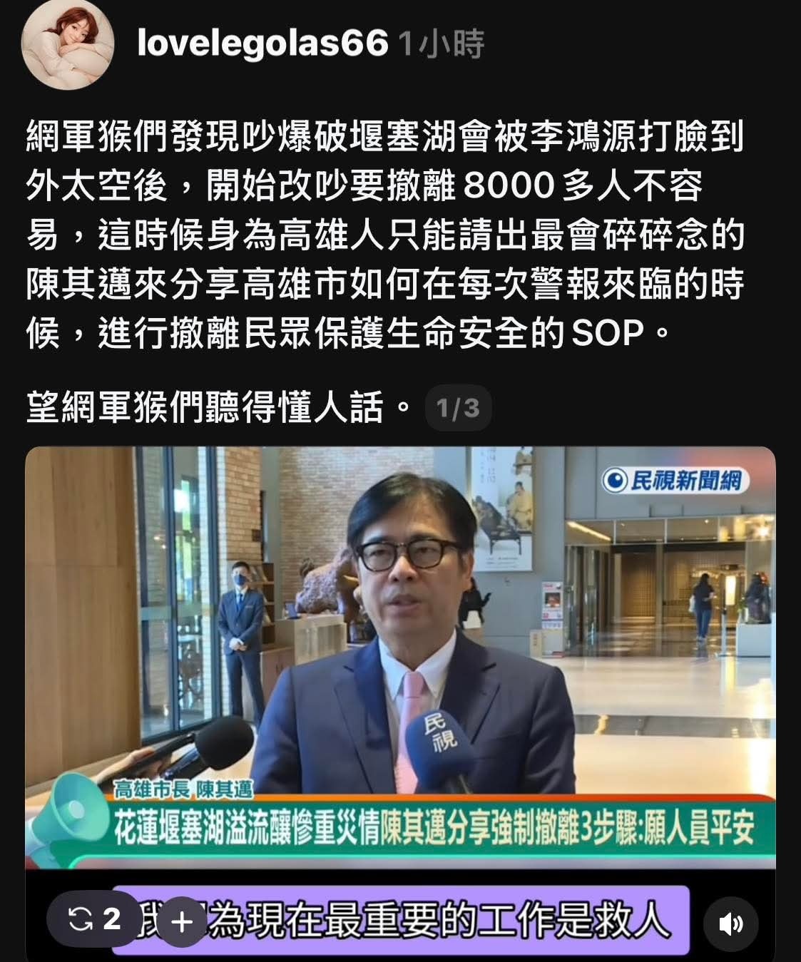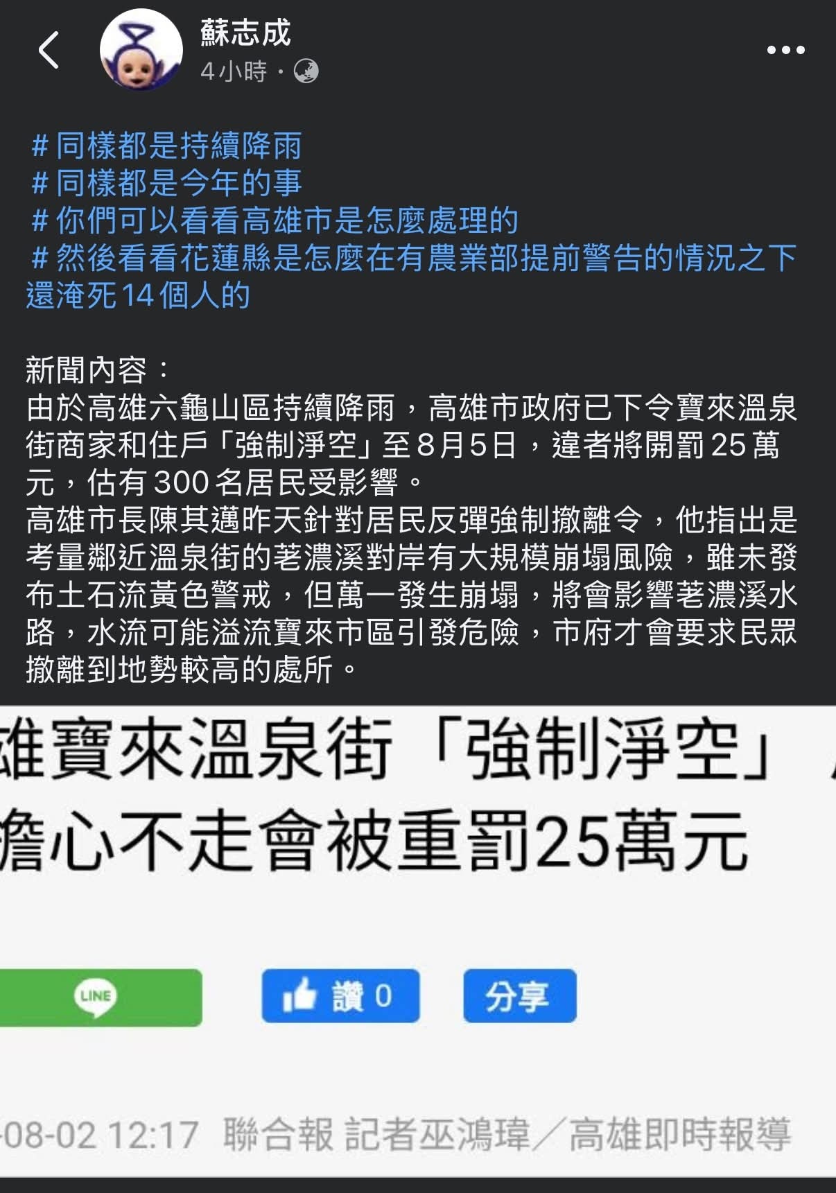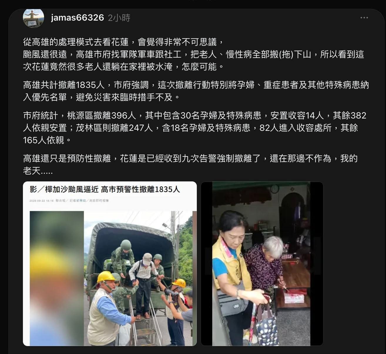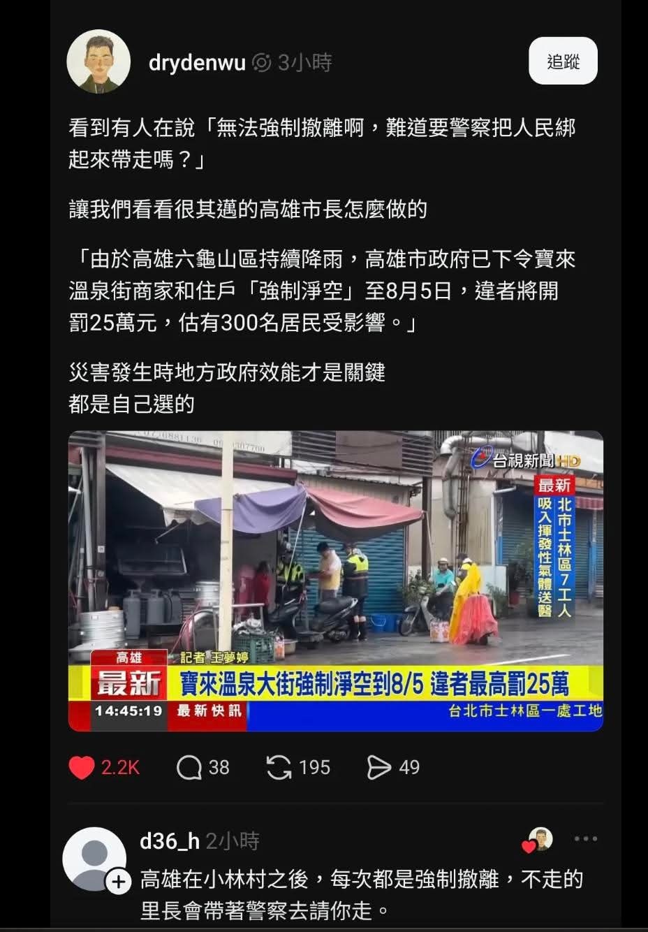 寶來溫泉那個撤離,還被電視新聞做成高雄民怨的新聞。