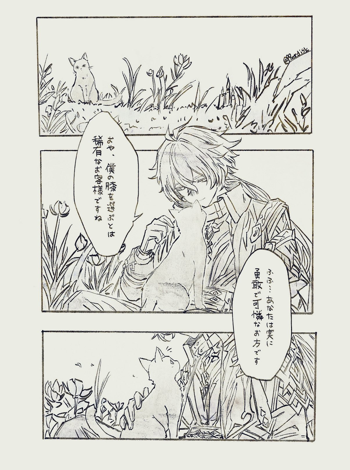 おや、僕の膝を選ぶとは稀有なお客様ですね