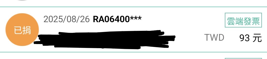 原來捐掉的發票會自動隱藏末三碼