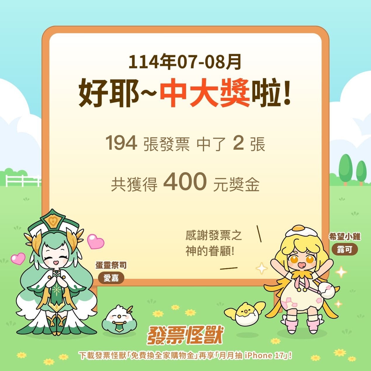 我把今天靠大家的祝福得到的發票獎金捐出去了