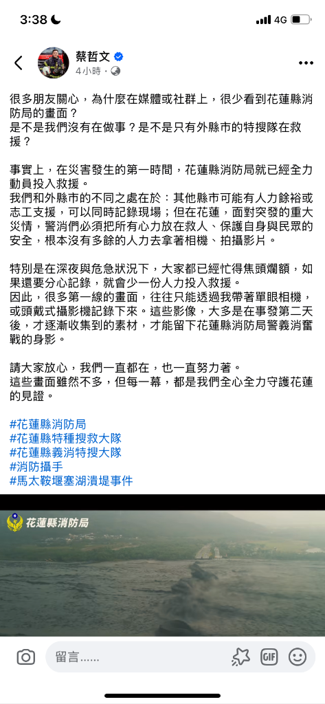 「很多朋友關心,為什麼在媒體或社群上,很少看到花蓮縣消防局的畫面?