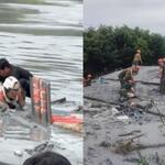 消防局表示,由於需涉水渡河返程,搜救人員以人鏈方式傳遞,過程中因水流湍急,特別以繩索輔助,並將遺體綁上3件救生衣作為浮具,下午3時39分許成功渡河並徒手搬運至救護車,後續由檢警處置相關事宜。」