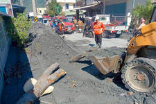 環保局表示,由於現場淤泥量多,今天上午8時緊急加派清泥專班(含吸泥車、動力水車、除泥工具車) 共4台車輛與10名清潔隊員趕赴災區,清潔隊員將與搶救工程人員同步作業,在停水停電的艱困環境下,搭配水車與消毒劑逐步建立防線,以利後續災後環境清理復原與公共衛生防護的工作。」