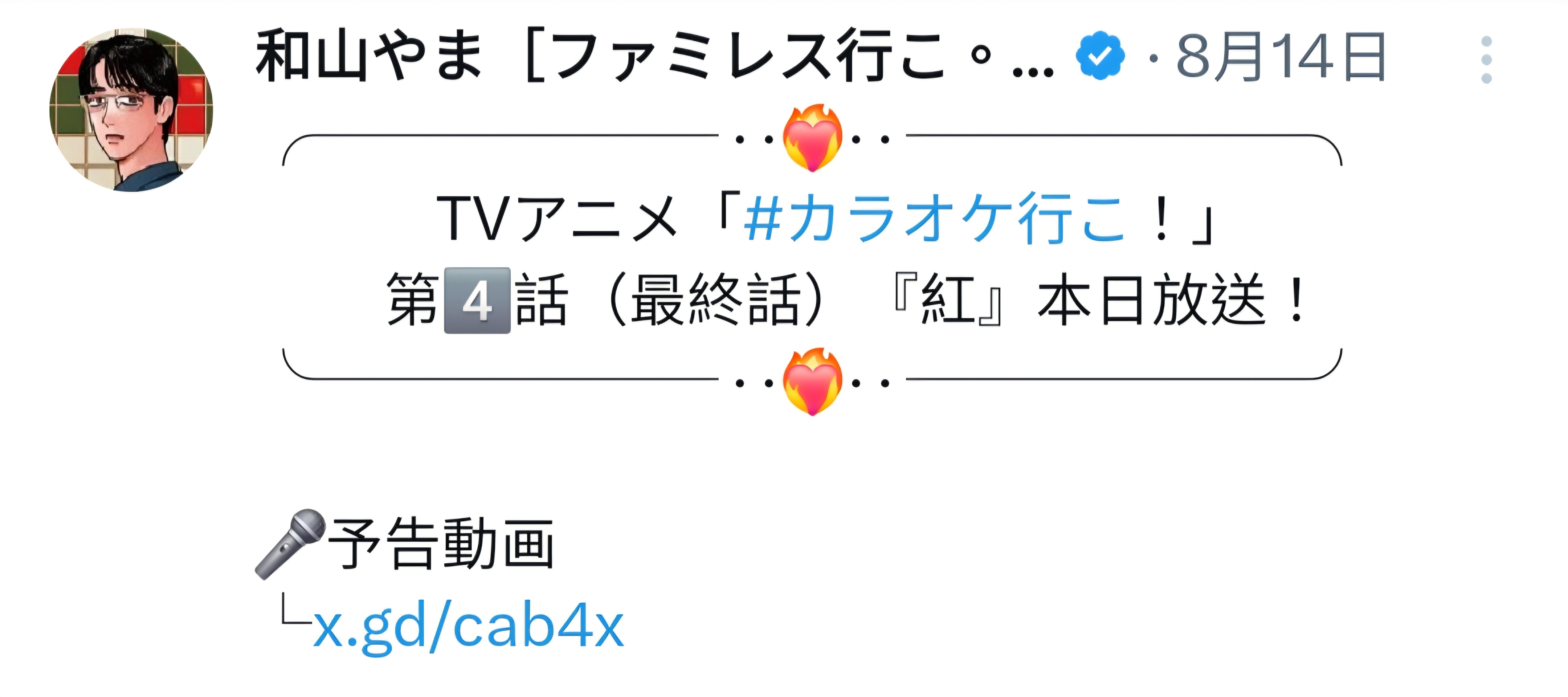 順帶一提,為你著迷第四集播出後,和山老師的分享貼文也是寫最終回放送