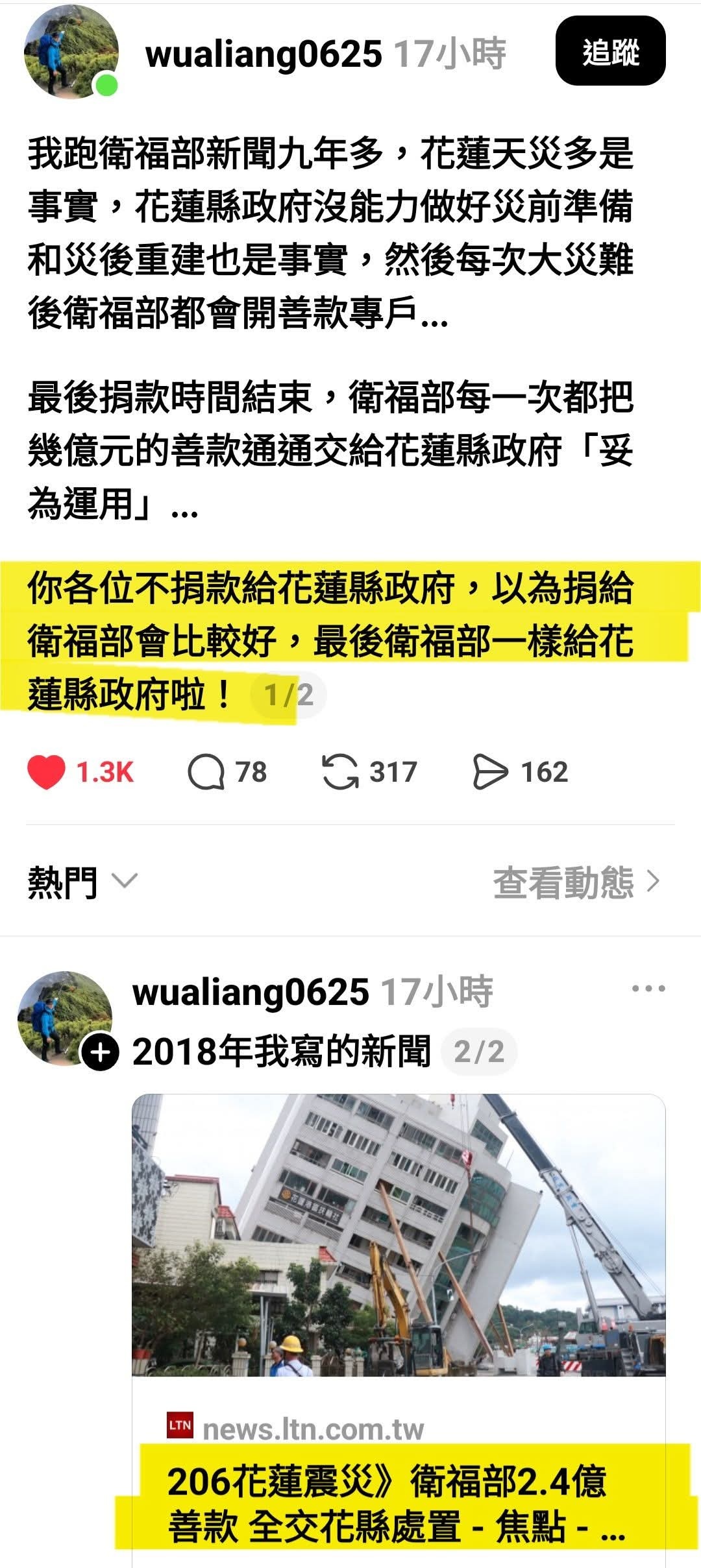 『衛福部最後還是把捐款給花蓮縣政府。