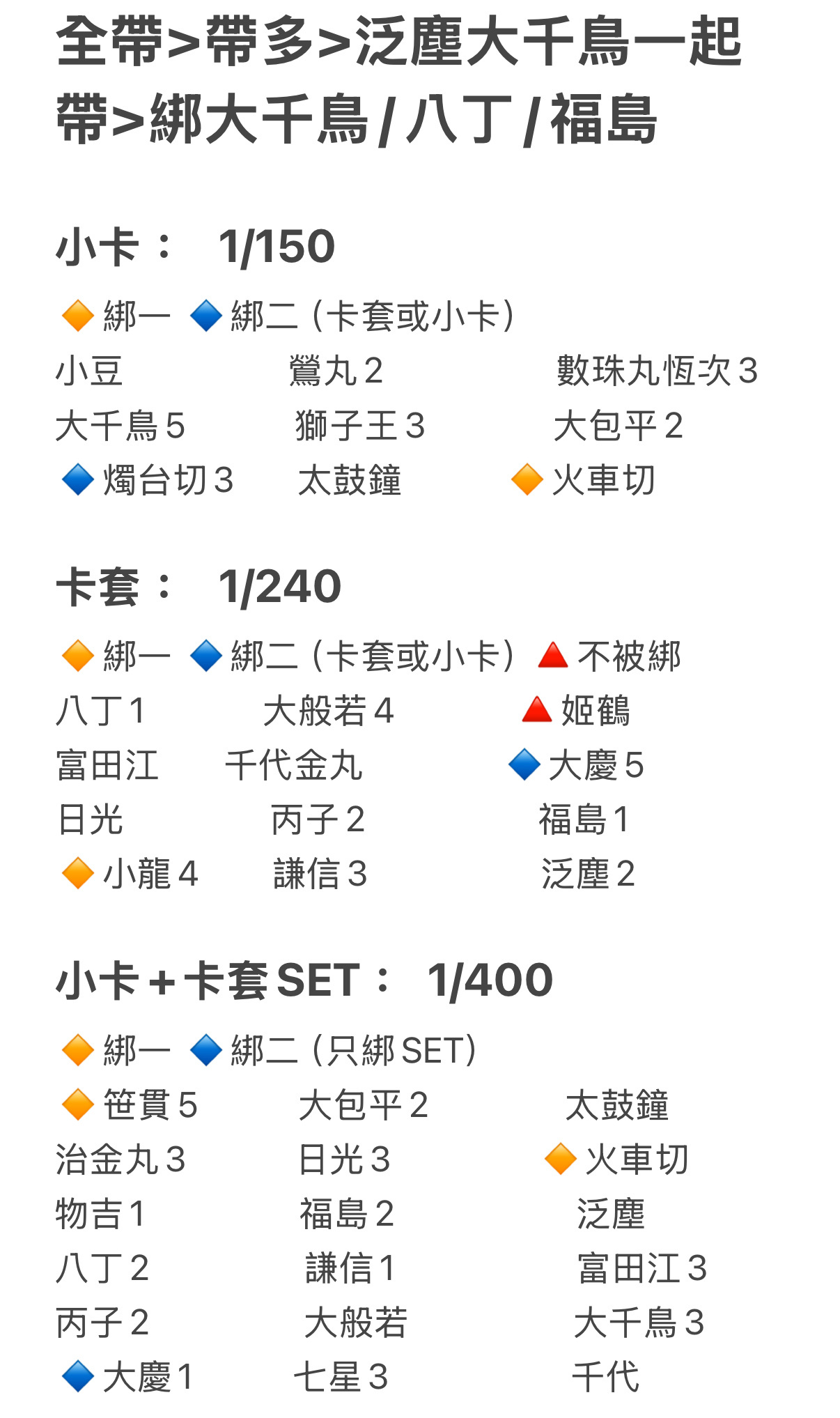 收燭台切小卡綁鶯丸小卡和太鼓鐘小卡