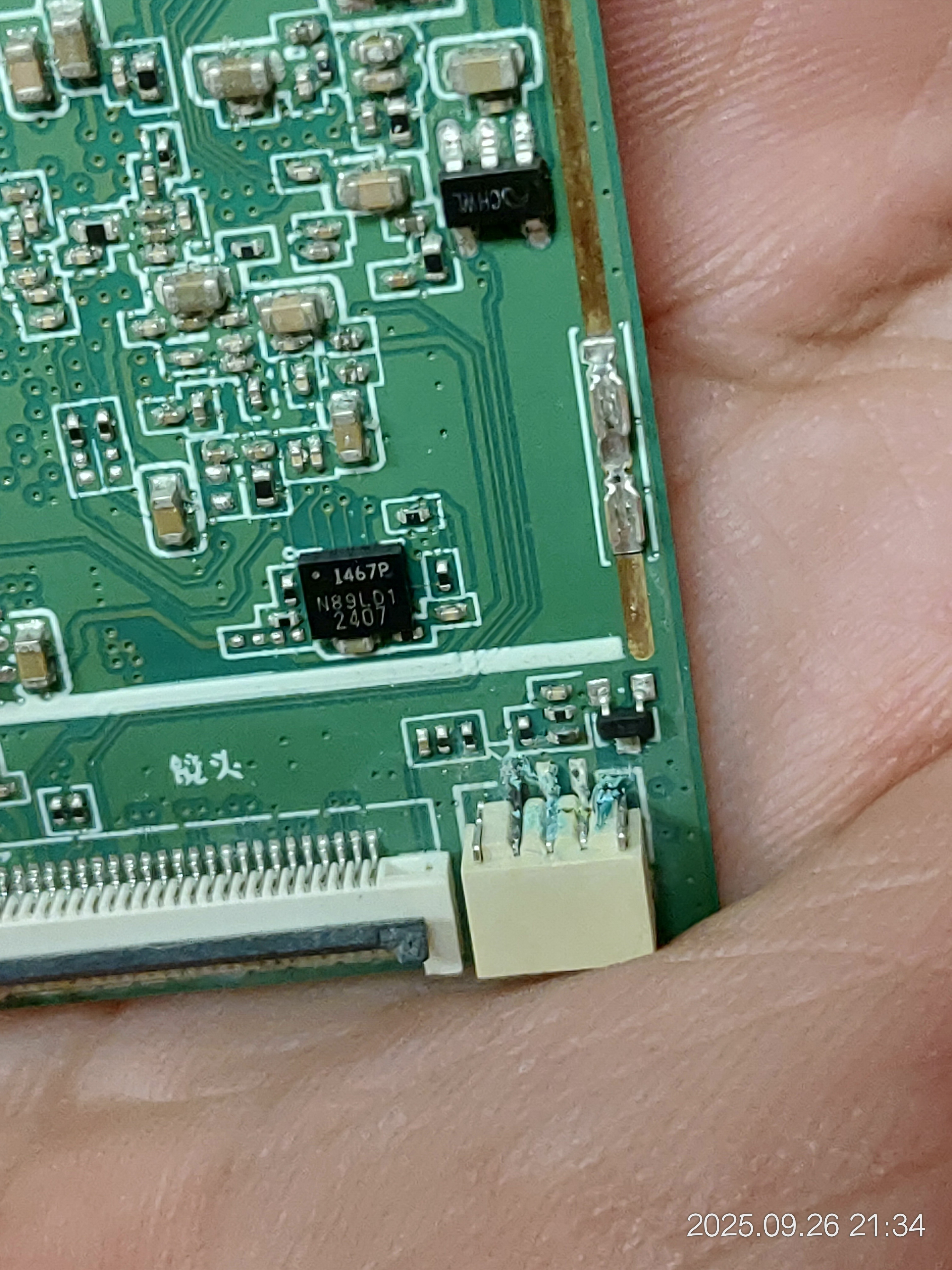 電路板噴接點復活劑再擦乾放置後又可以正常開機了(但幾個穿孔內部已經開始發黑,不知道能用多久)