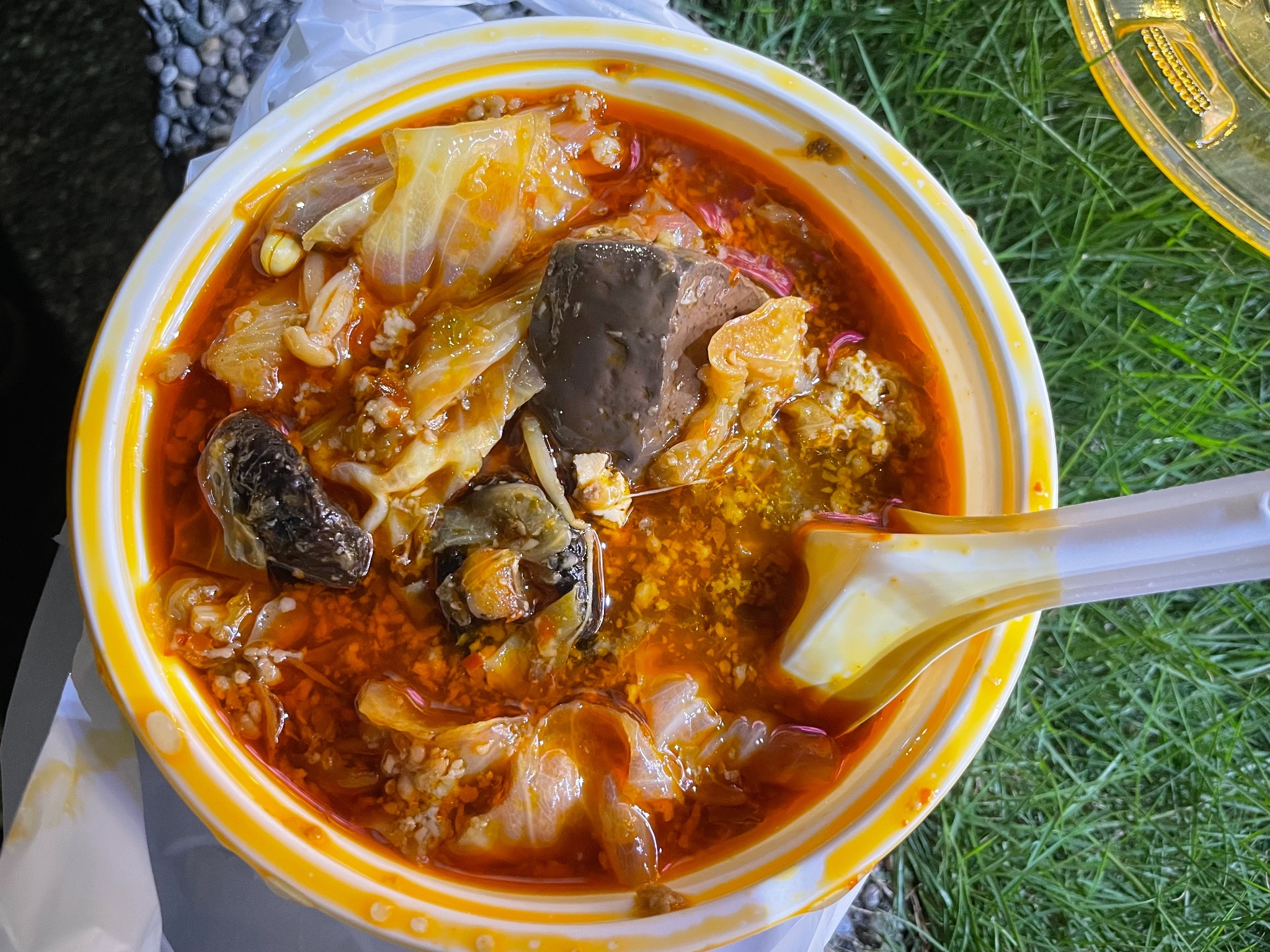 六合夜市晃好幾圈不知道要吃什麼最後還是又選了酸辣湯