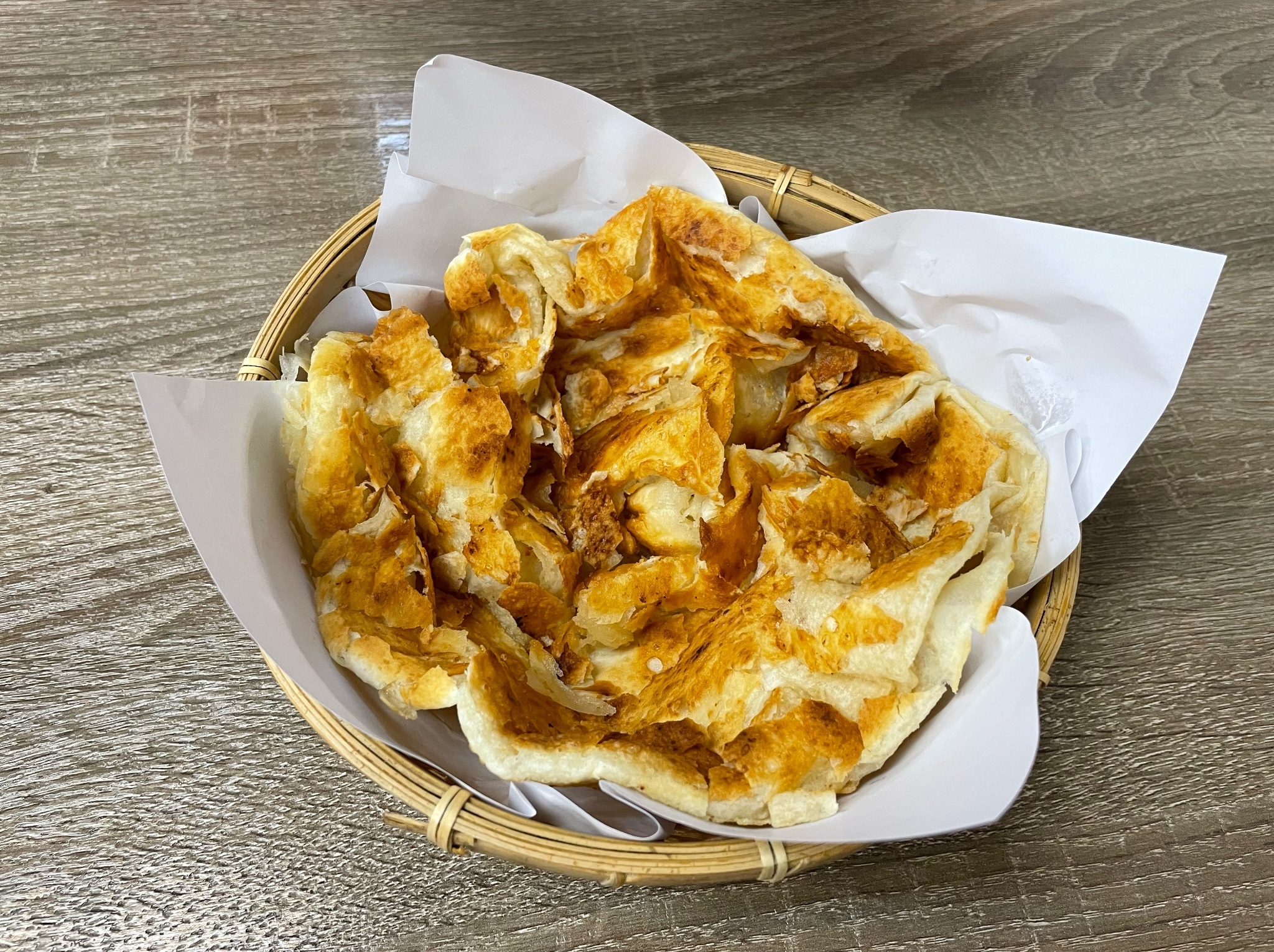 甜烙餅看起來超酥脆,然後也很難扯開ww很有嚼勁,他沒有醬料,我覺得是天生的那種甜