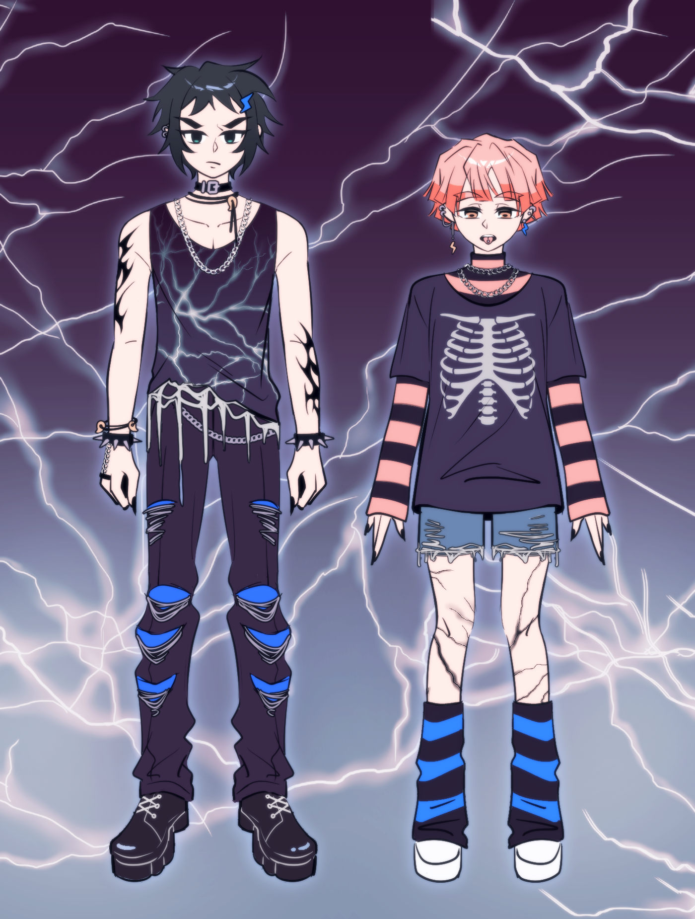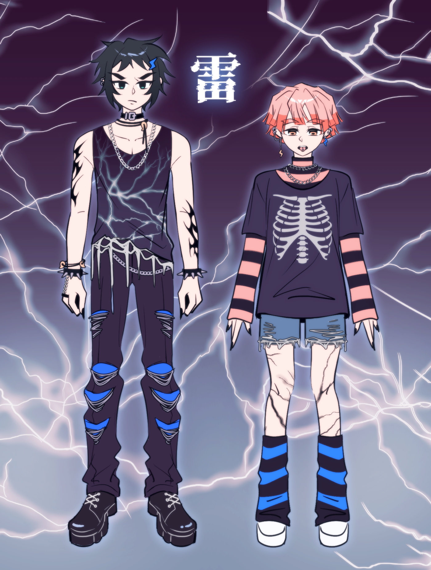 1. 畫完覺得很適合組視覺系樂團,團名叫作「電撃葬」,獪岳代號是「青雷」,善逸代號是「閃光」,善逸主彈吉他,獪岳是貝斯手,不過兩人都會吉他與貝斯