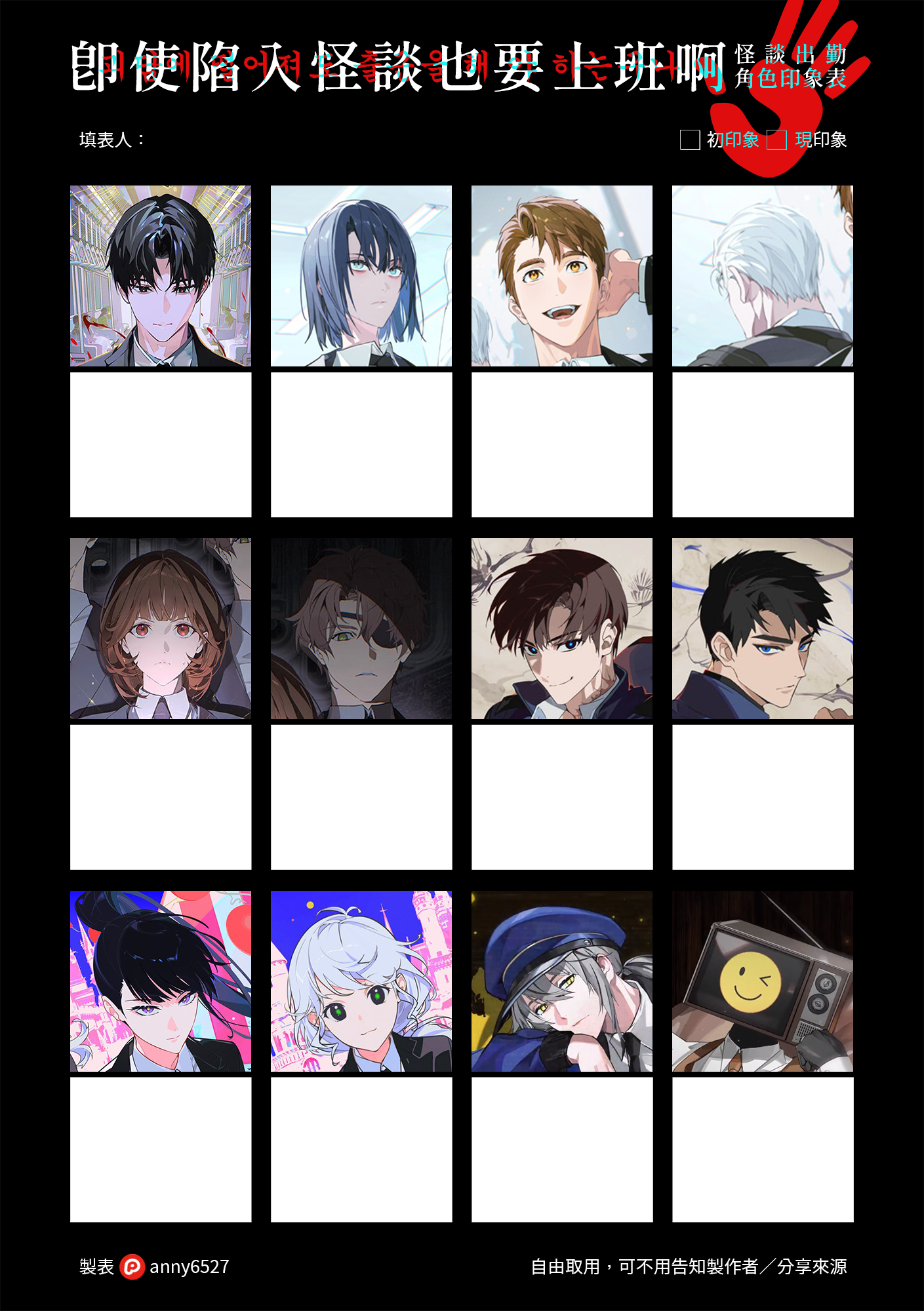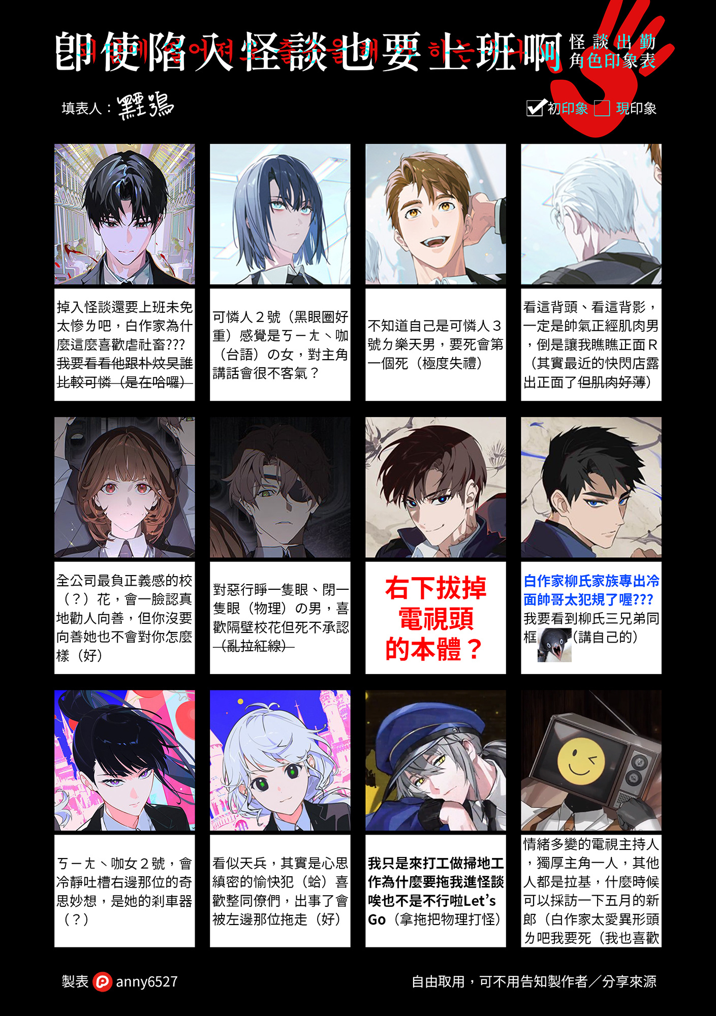 有人因為我對某角色的初印象笑死,說要做角色印象表給我,結果他什麼都還沒幹我就自己做完了???