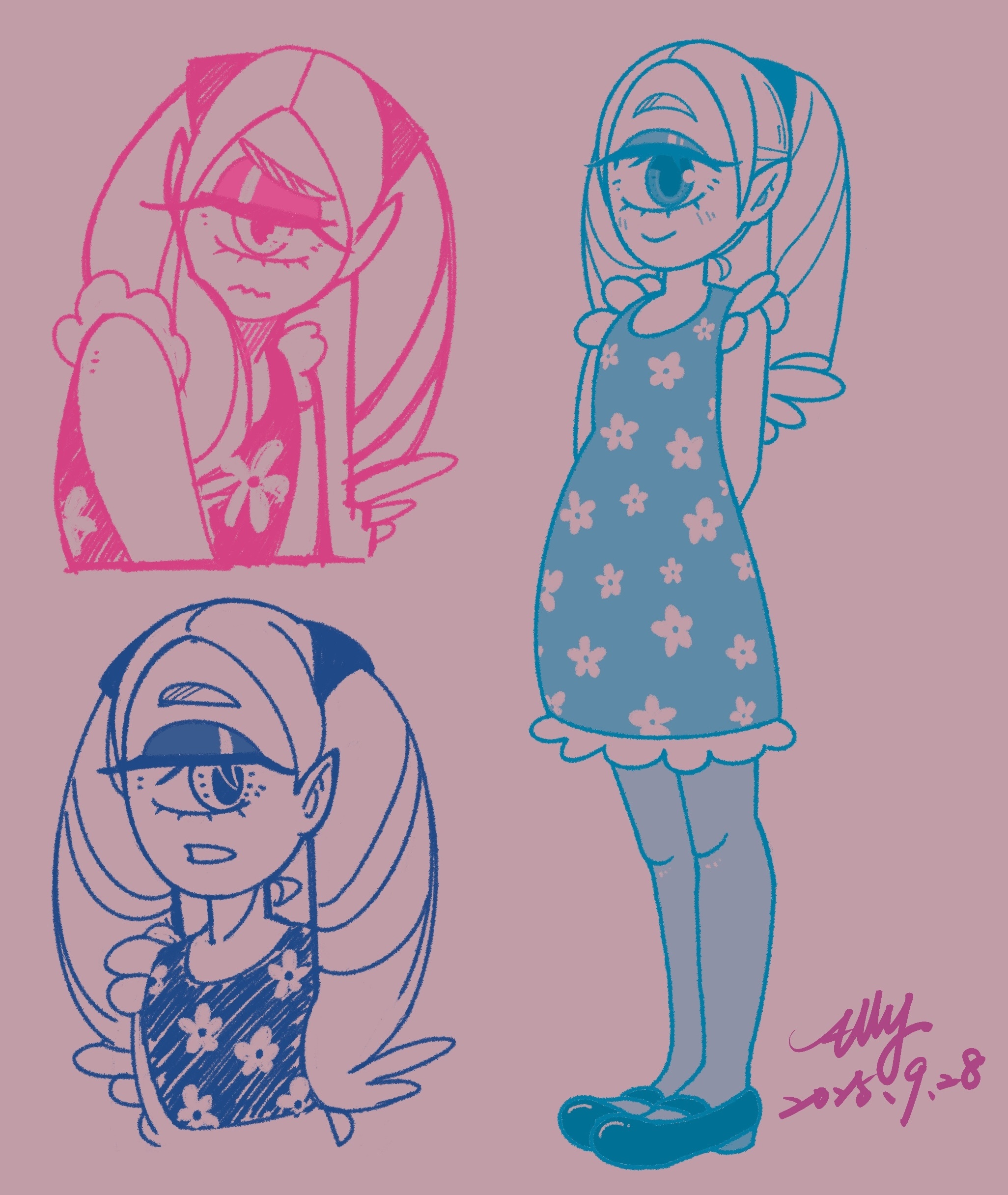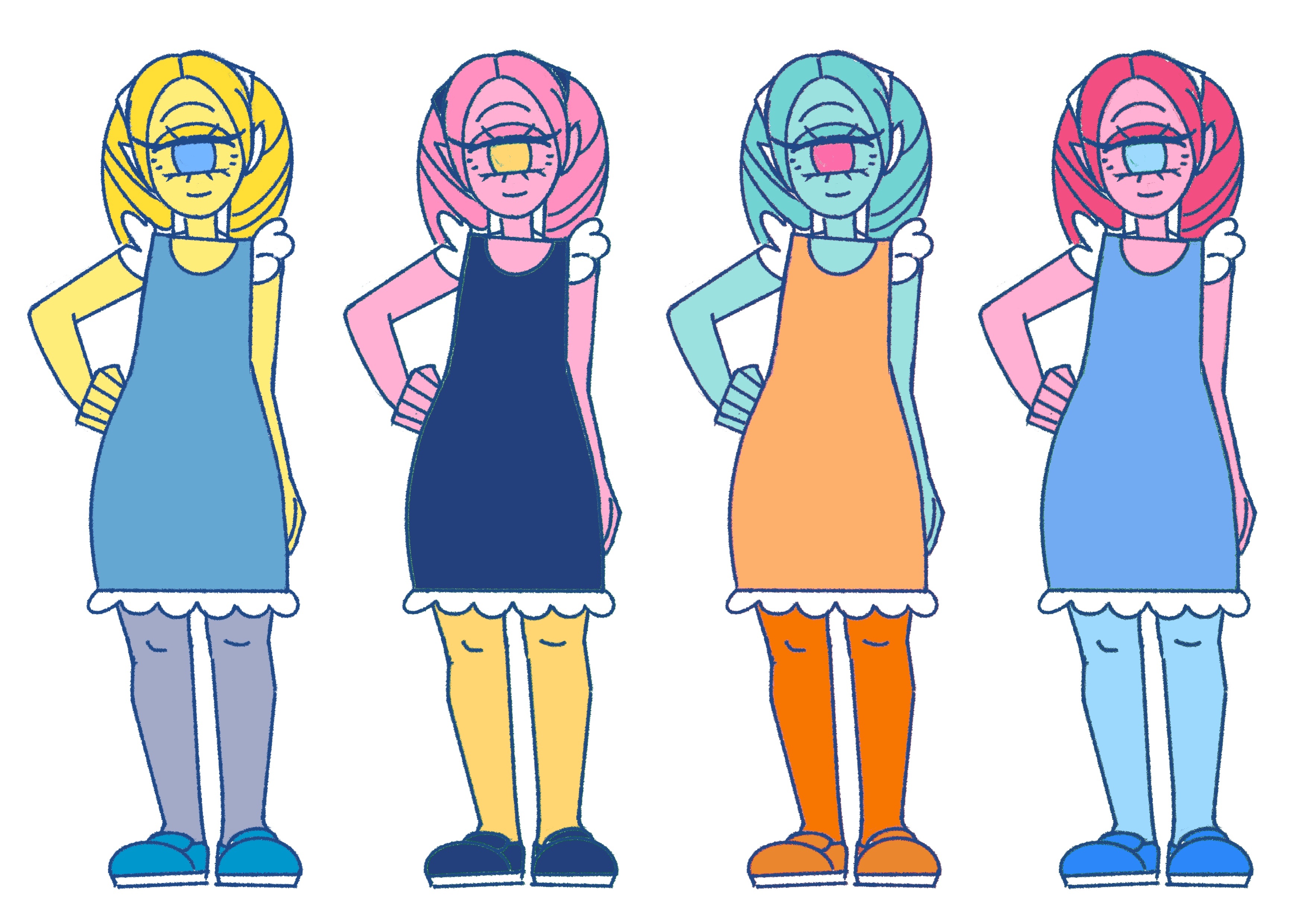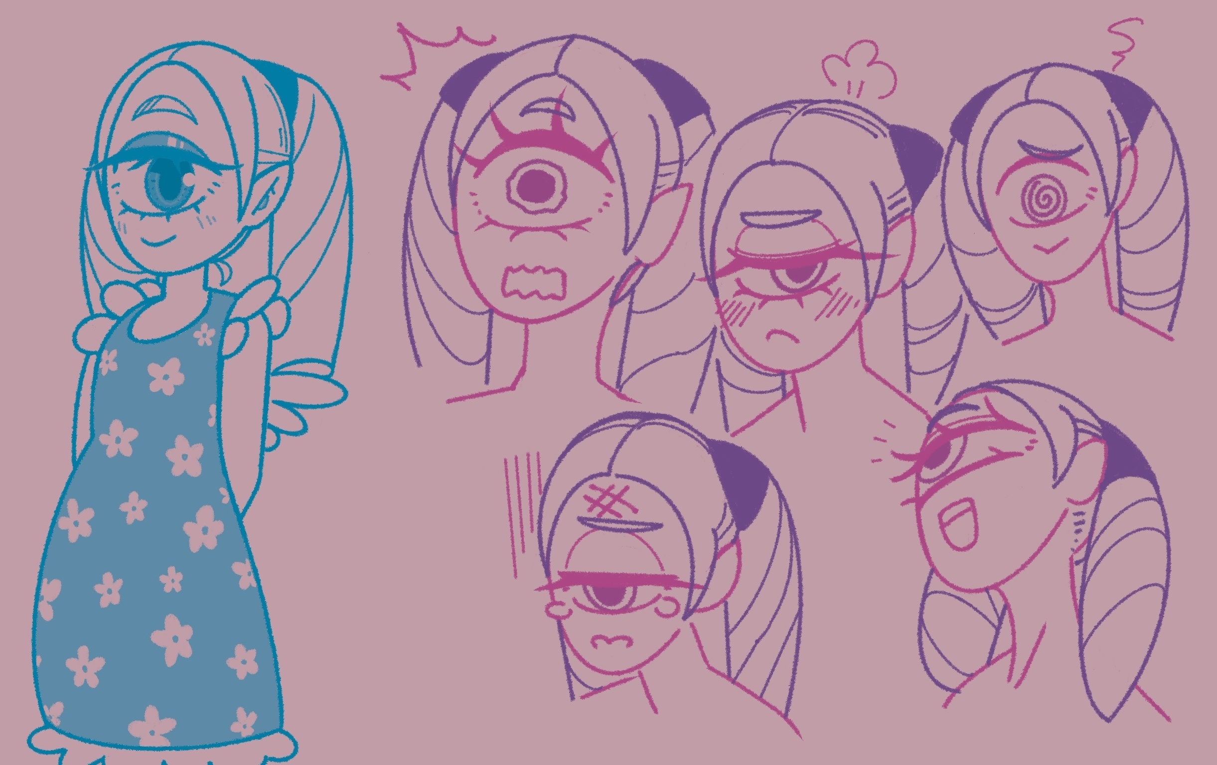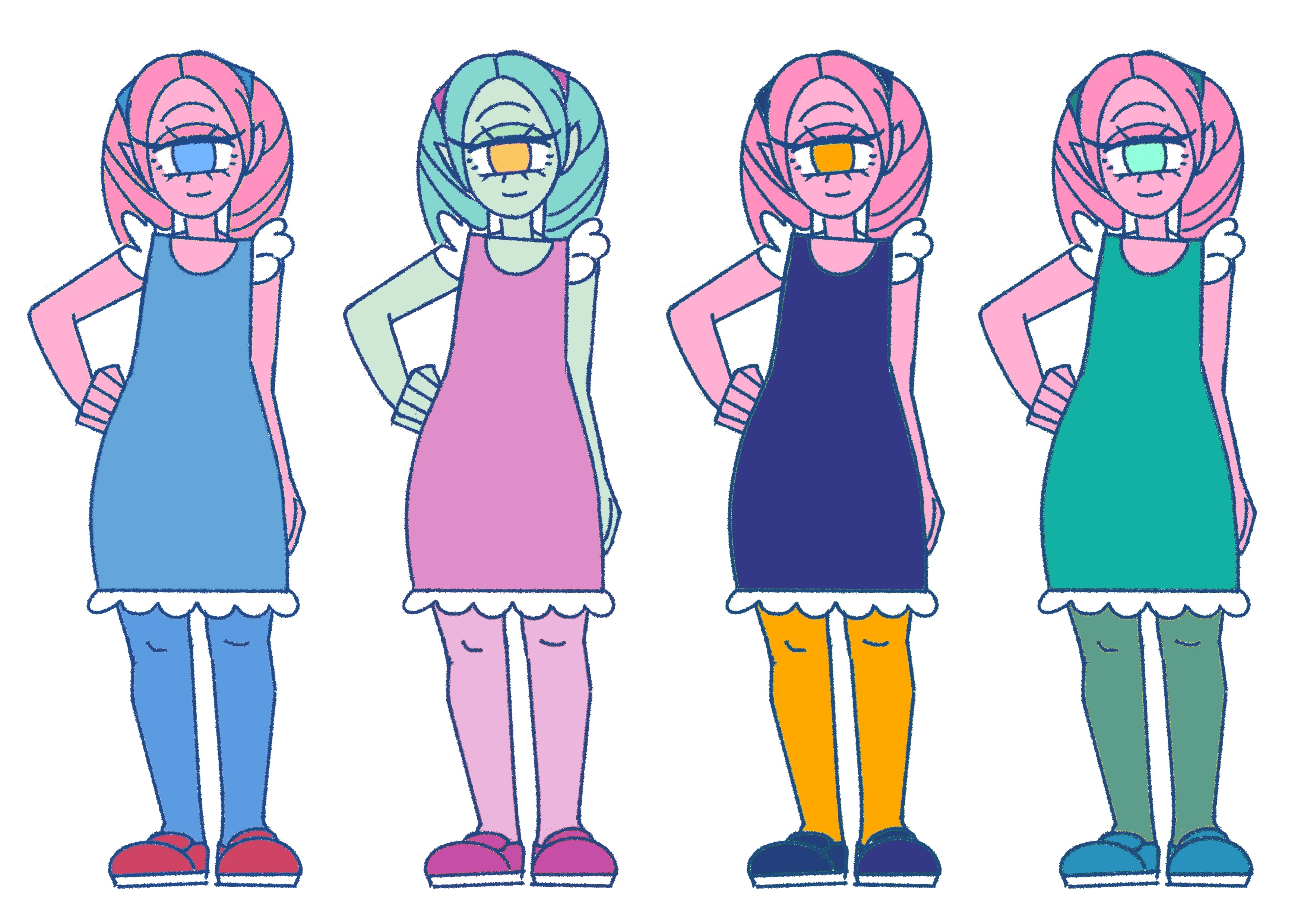 最終決定:【4-3】粉紅色皮膚+較深一點的粉紅色頭髮+黃色瞳孔!