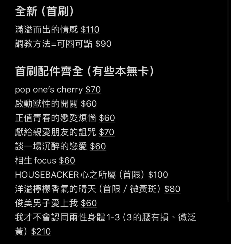 有哪些偏好的嗎?這邊很多想出但應該不熱門,價位大多30-70/本