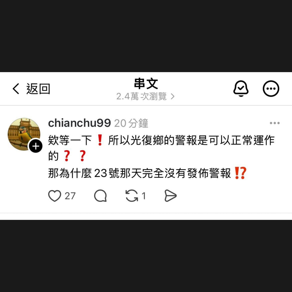 可以誤按但是23號那天完全沒有運作到底是什麼鬼警報