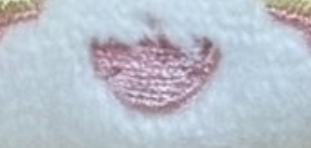 : 幫忙看了一下娃媽的X曬照,照片上是被毛遮住了但娃稿、電繡、面皮上在右側也確實有繡一顆虎牙