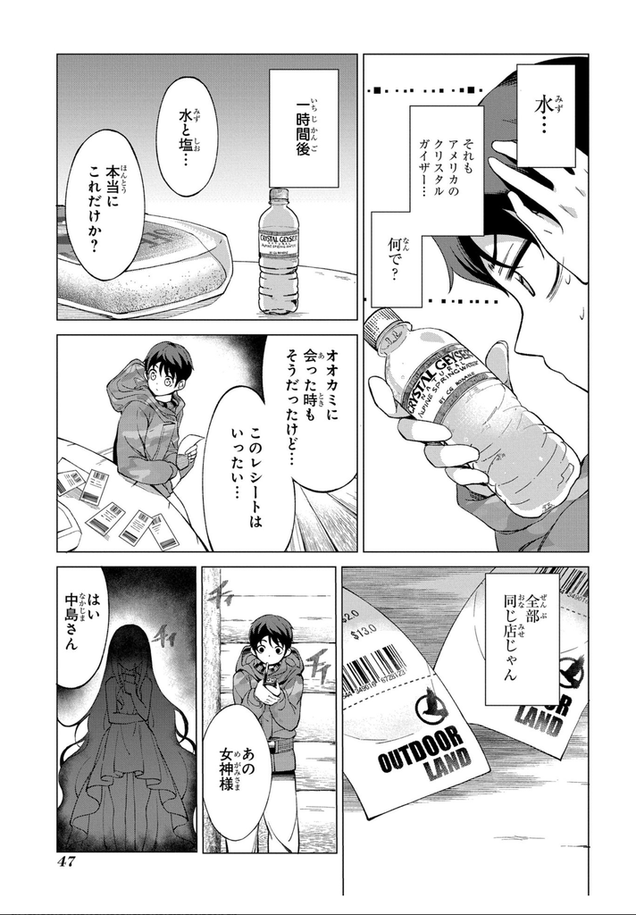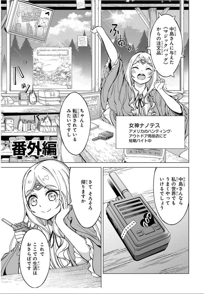 不,女神有好好把工作做好,把外幣轉換成美金,然後確實的入帳並起把收據交給顧客(中島)。不過也因此,只能買到女神打工的那間美國戶外用品店裡賣的東西。