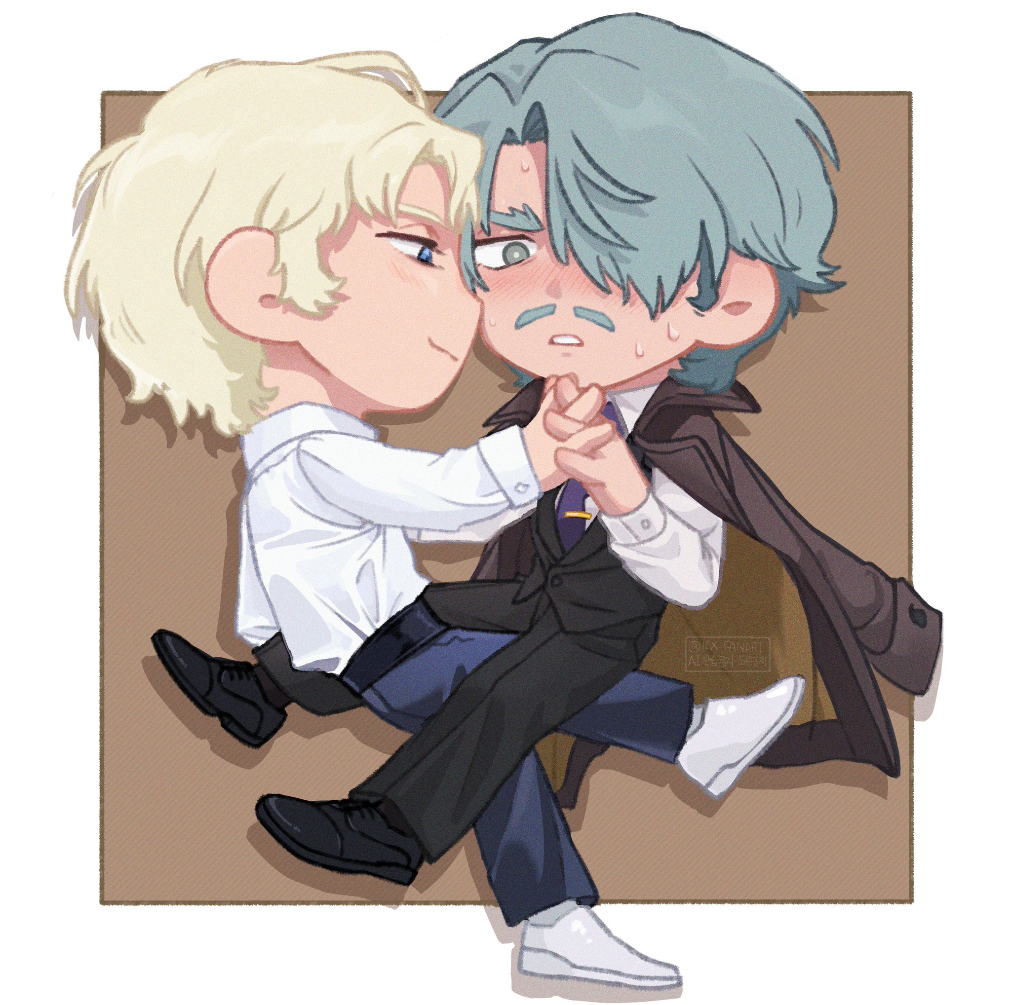 →還是滿想看動畫🟥🟩重逢 🟥講了一堆然後🟩聽愣了說不出話瀏海掉一撮下來.gif