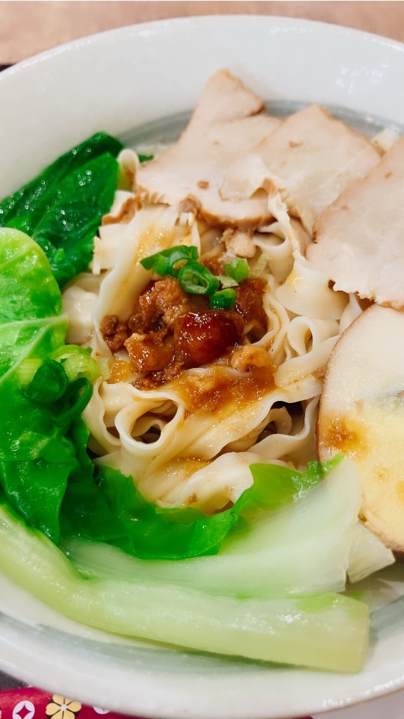 沒什麼胃口但覺得應該吃點熱鹹食,想說鳳梨牛肉麵滿特別的就排隊點餐,快到我才發現1碗270元,算了我吃拌麵吧,幸好他們願意讓我換緞帶麵