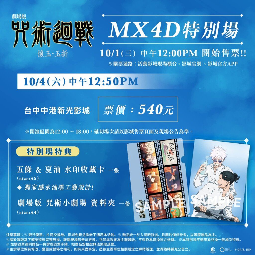 包廳好爽 看來是鄉下老鼠的勝利www咒術的話因為是總集篇看的人本來就不多,基本上特典前兩天都還拿得到(北部熱門的影城