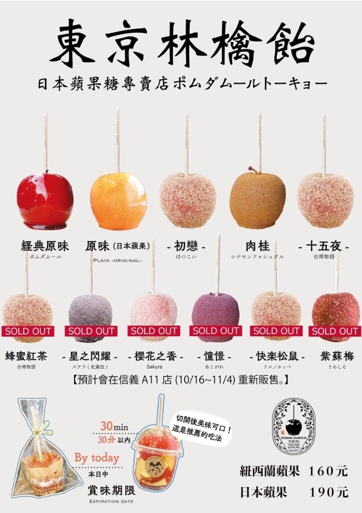 蘋果糖今天新增初戀跟十五夜口味 結果一天就賣完了
