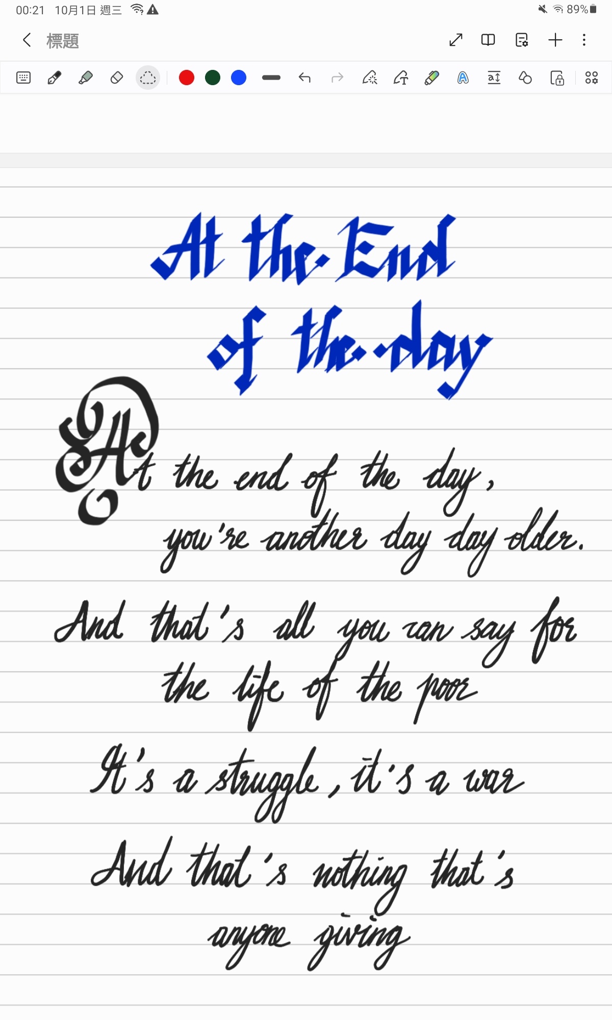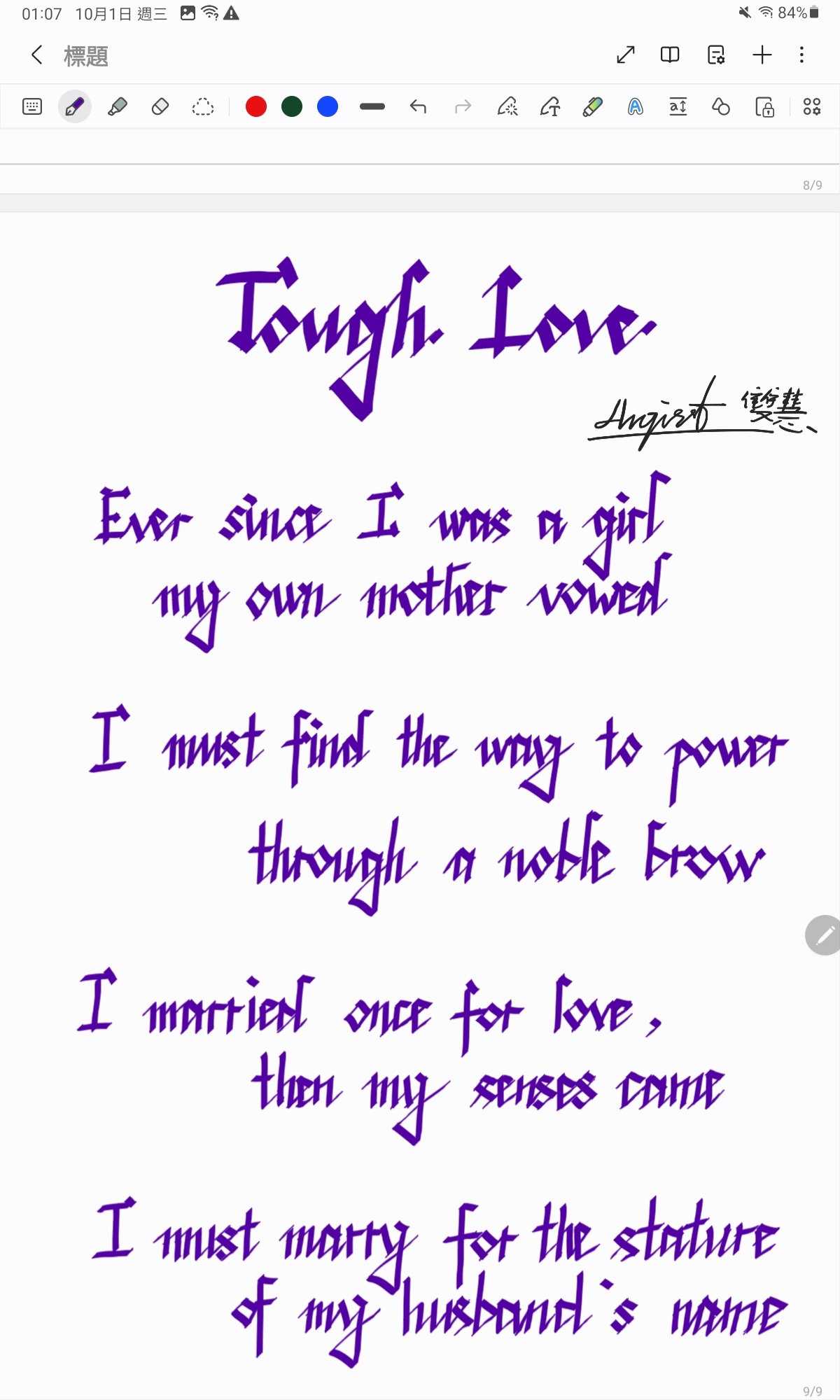 突然發現平板內建的筆記軟體超好練字