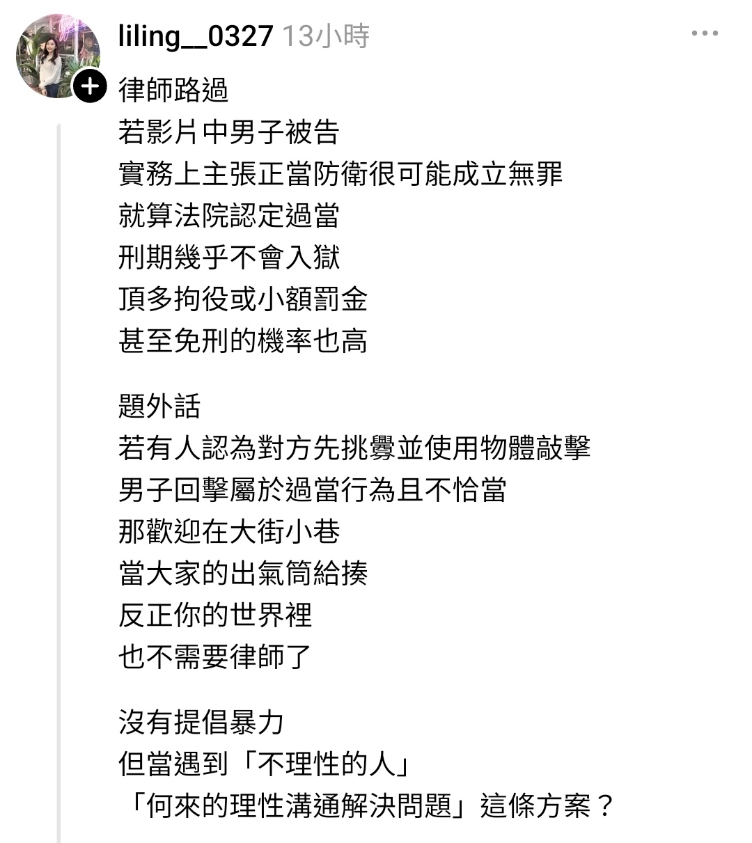 : 以前不像現在網路自媒體發達,現在真的是第一時間錄影自己蒐證最快。不管要不要反擊,先保留證據起來,有需要就可以用