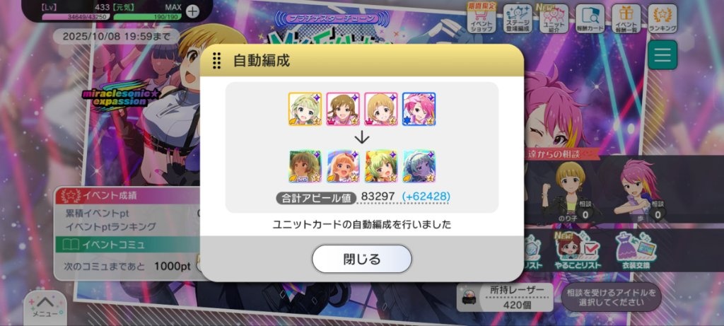 白支持スタナビくん了星星感覺會輸給兔子耶(每天都兩邊都拿1石的人)後來支持一下星星,免得輸得太難看原來星星會輸我也推了一把……順帶一提完成率是0%