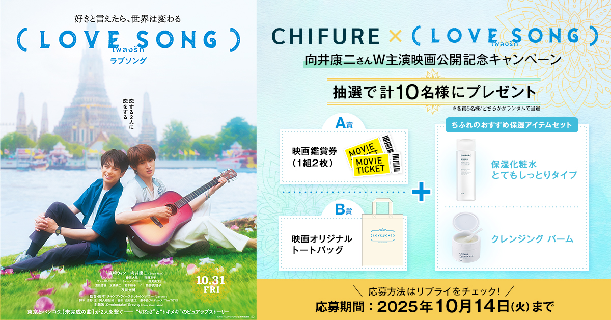 ちふれ保湿シリーズの広告に出演中の向井康二さんW主演映画『(LOVE SONG)』公開を記念してキャンペーンを開催✨