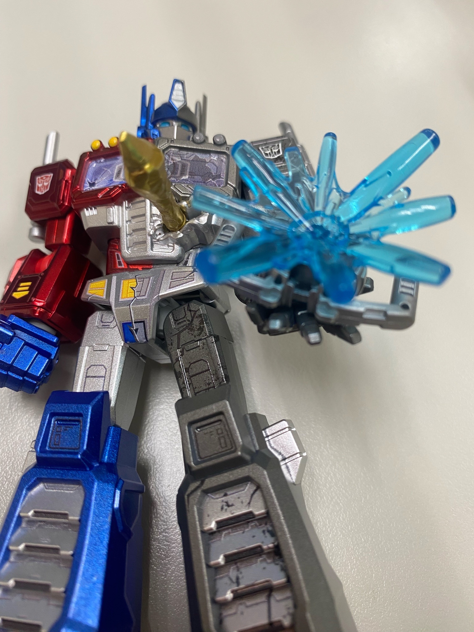 給大家看看這精美的舊化塗裝,連後背都有做硝煙殘留的黑色痕跡...布魯可這莫非是要跟孩之寶一樣學壞,把大家的死狀的都好好地描繪出來嗎?!