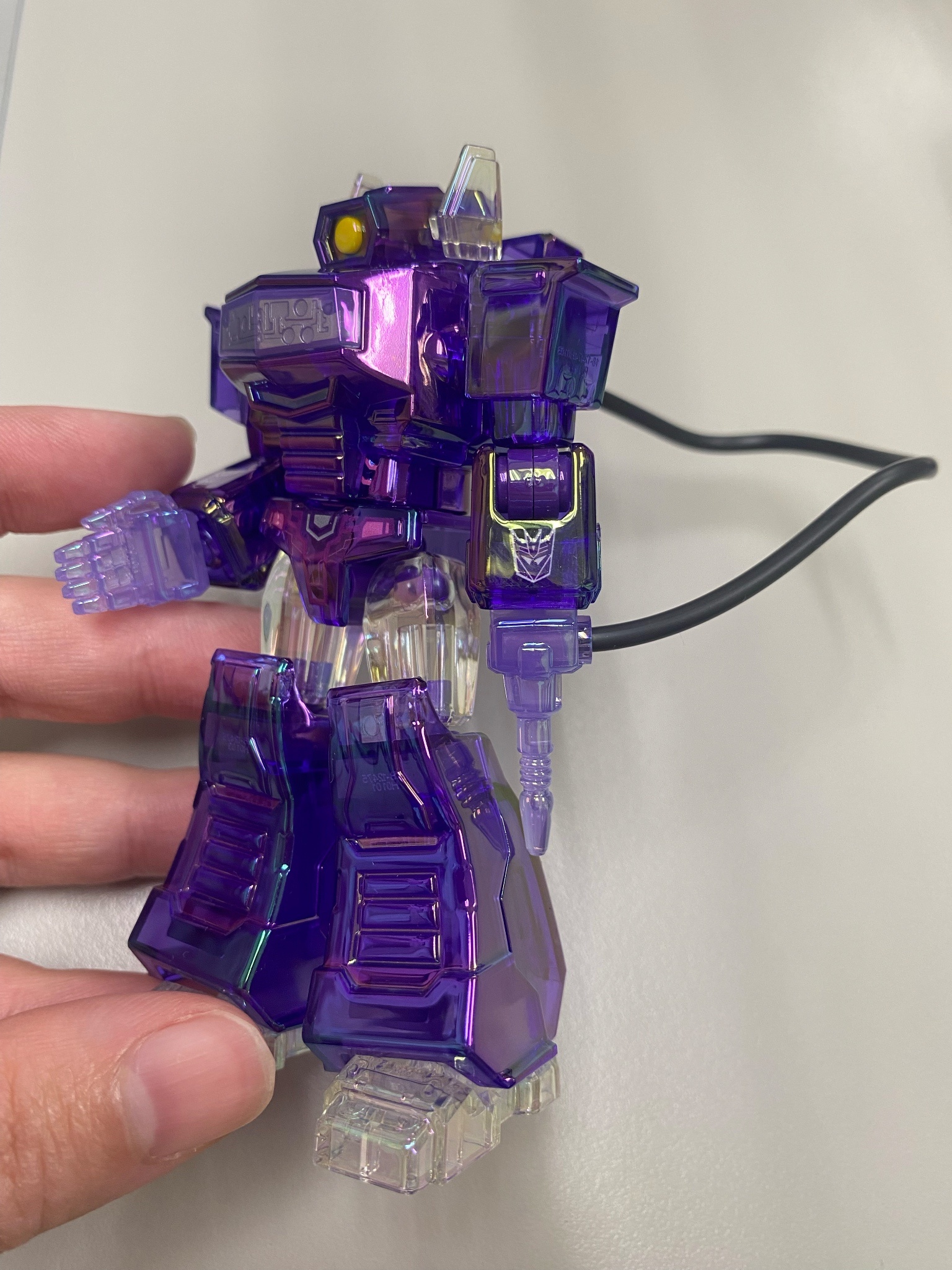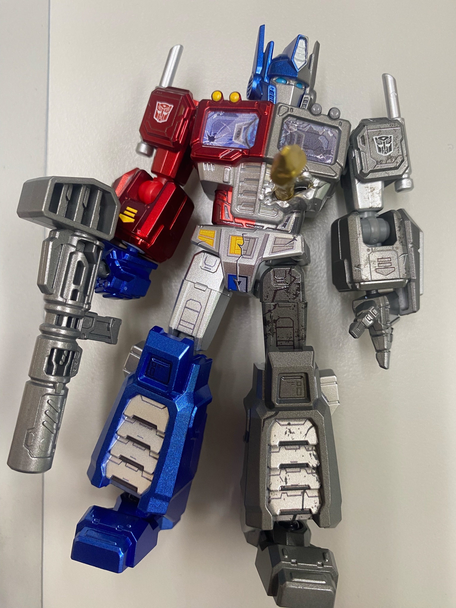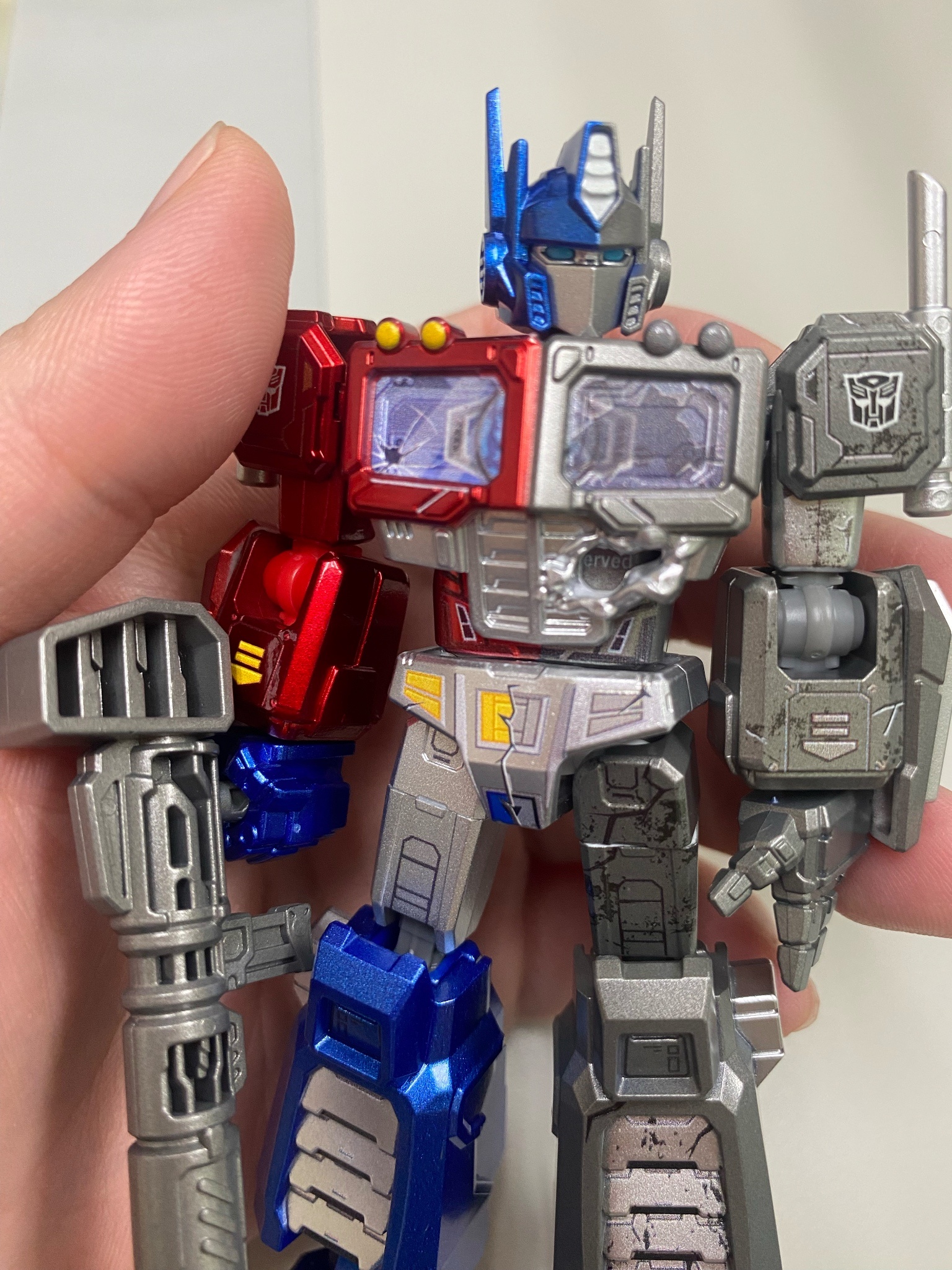 給大家看看這就是半邊彩色、半邊死灰的效果...說真的,布魯可能想到這種呈現方式也真的是厲害,雖然孩之寶也有做過這種半身是透的或是掃描隔線的Figure,但做半邊死人...還真的是頭一回呢(ㄍ